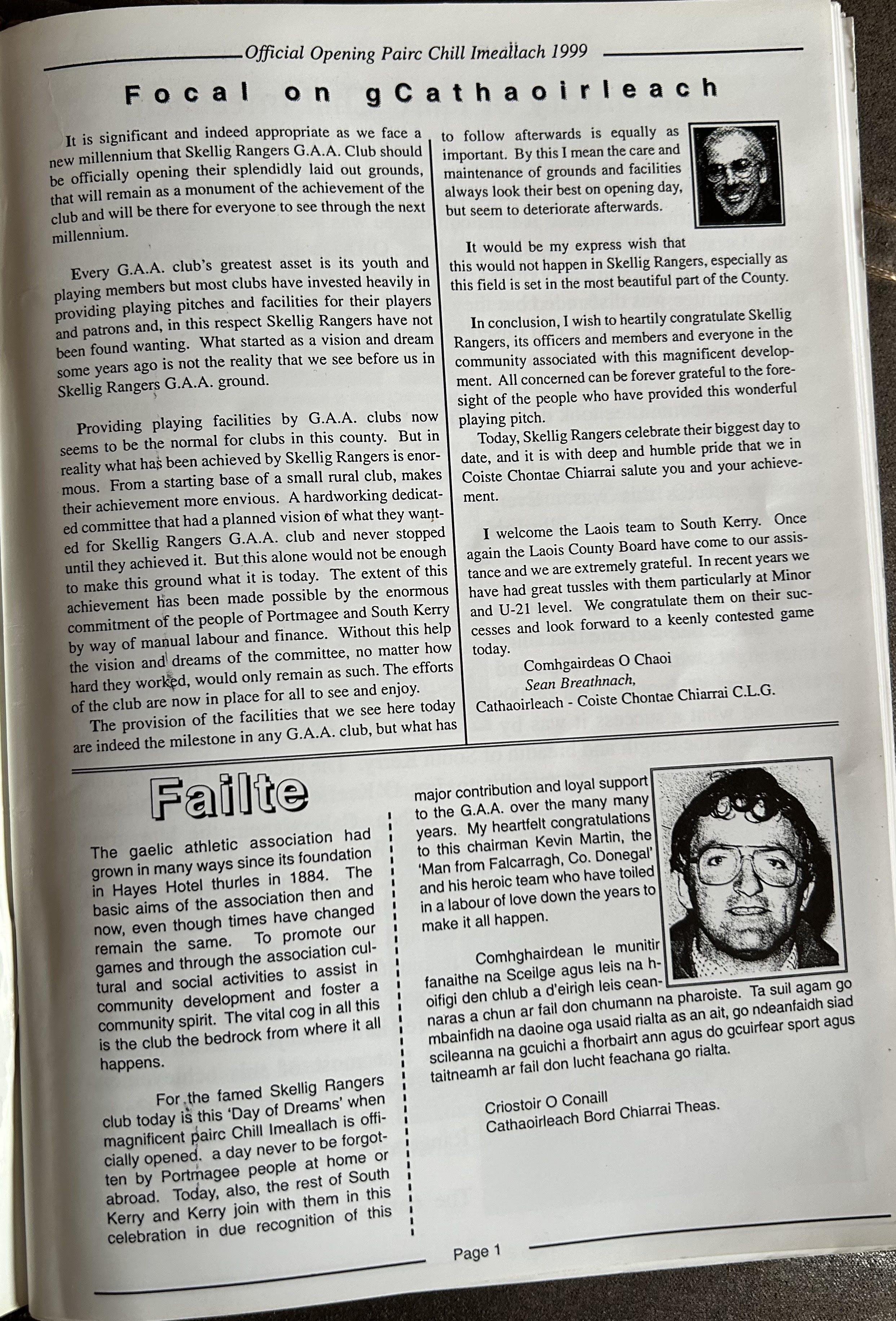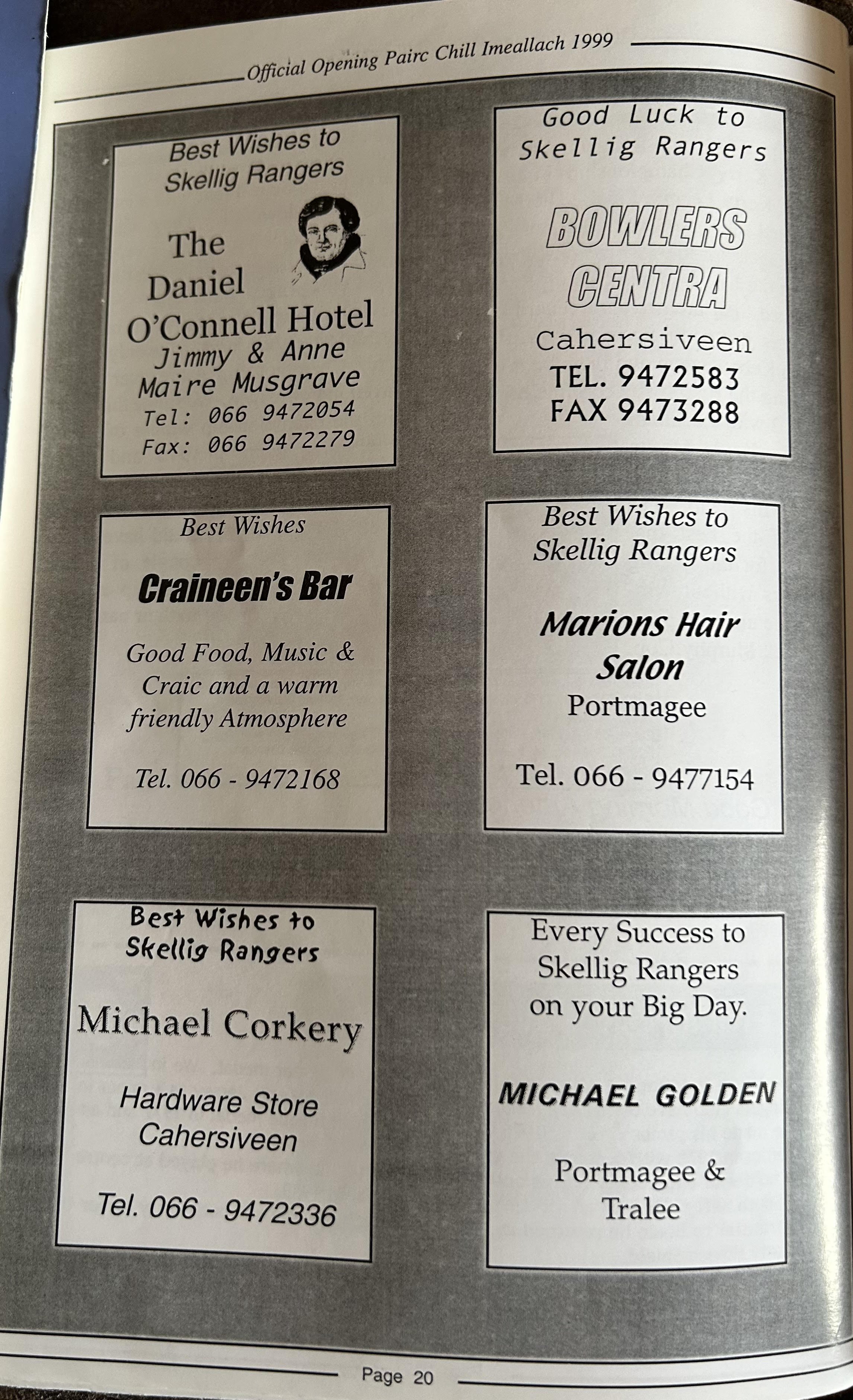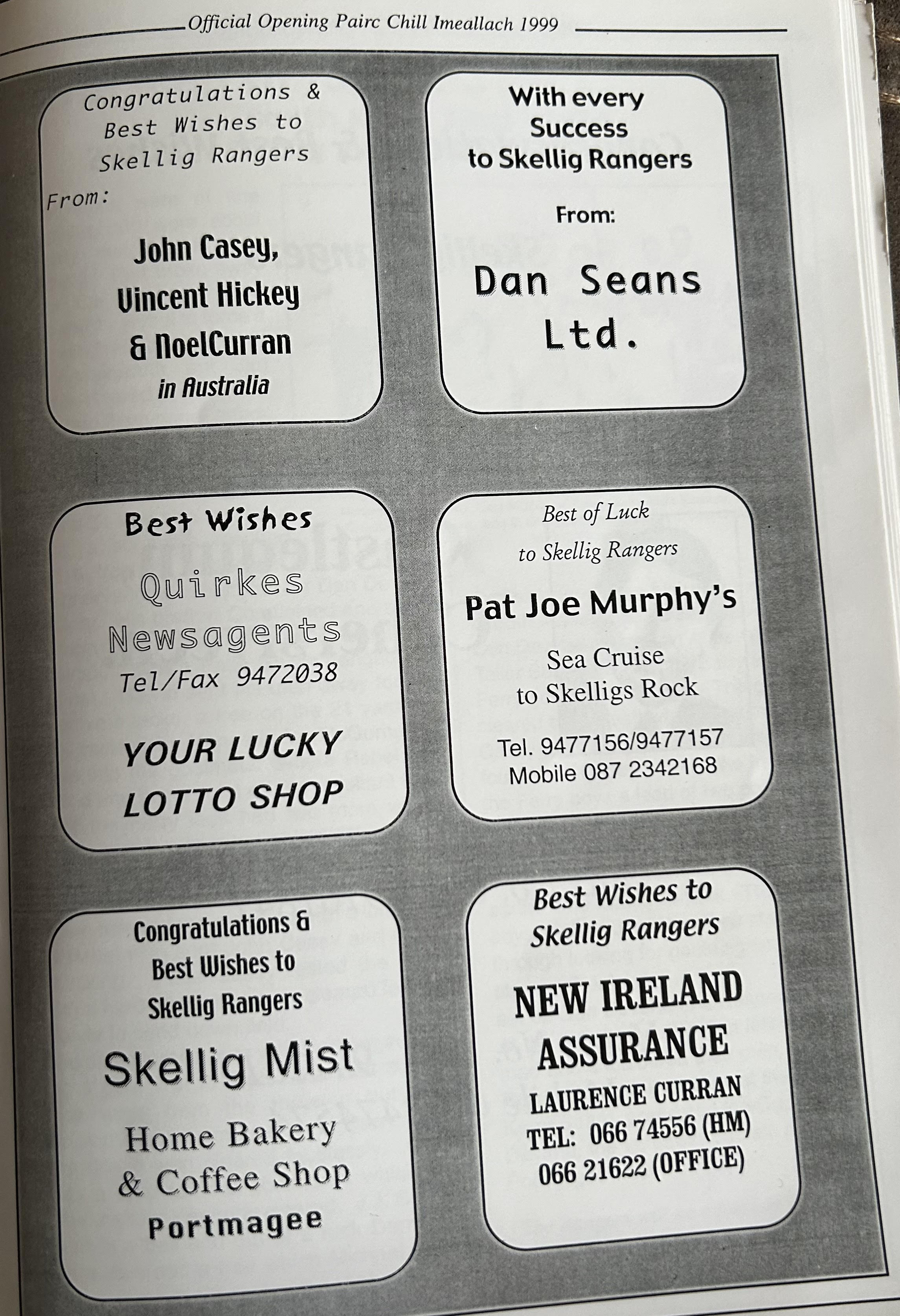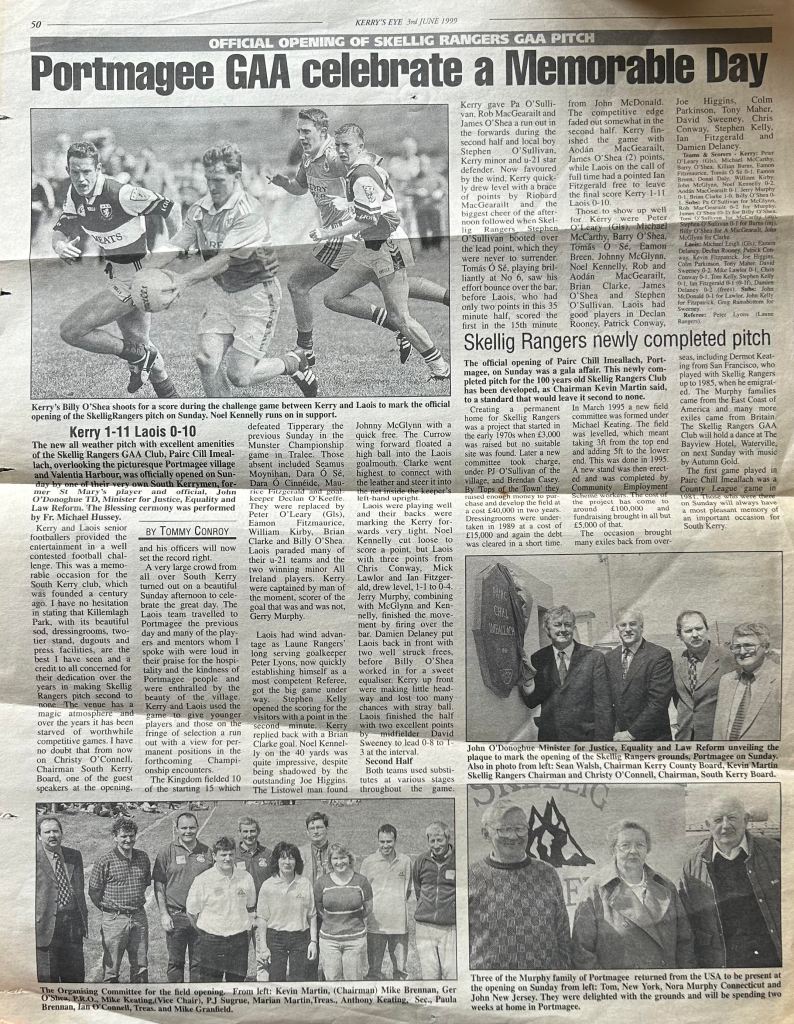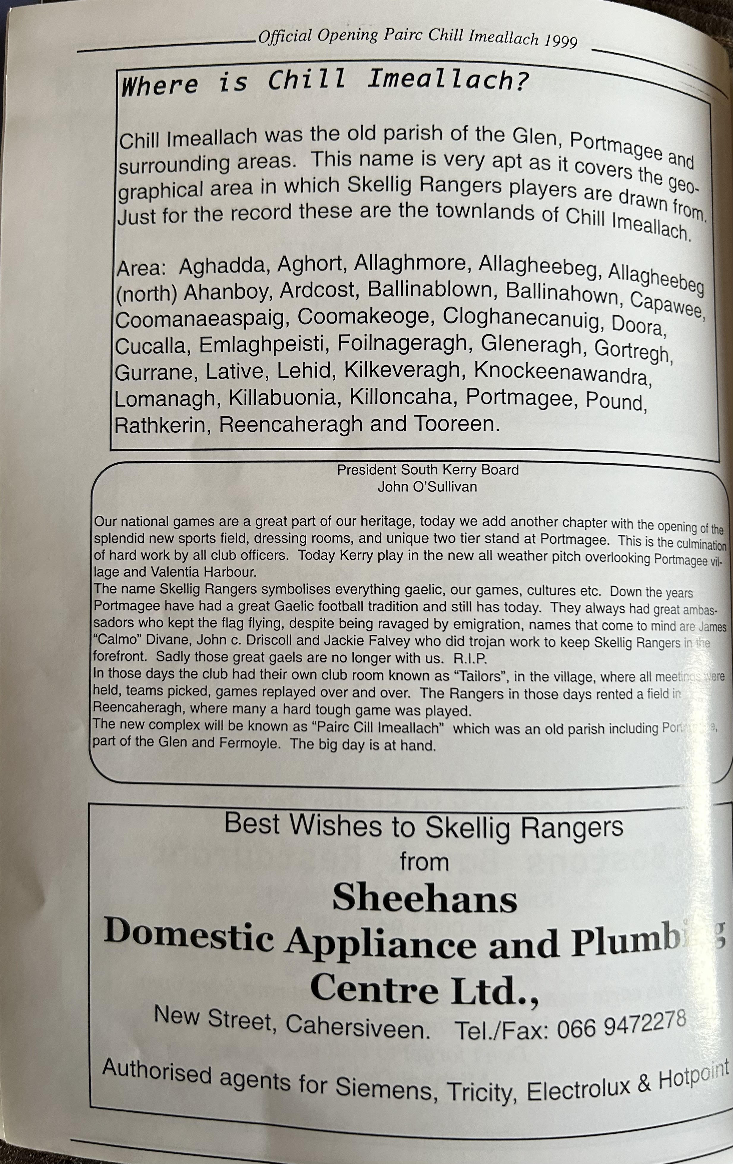 Pairc Chill Imeallach was opened on May 30th 1999. Below is a match report of the opening game played at Pairc Chill Imeallach along with the match day Programme.