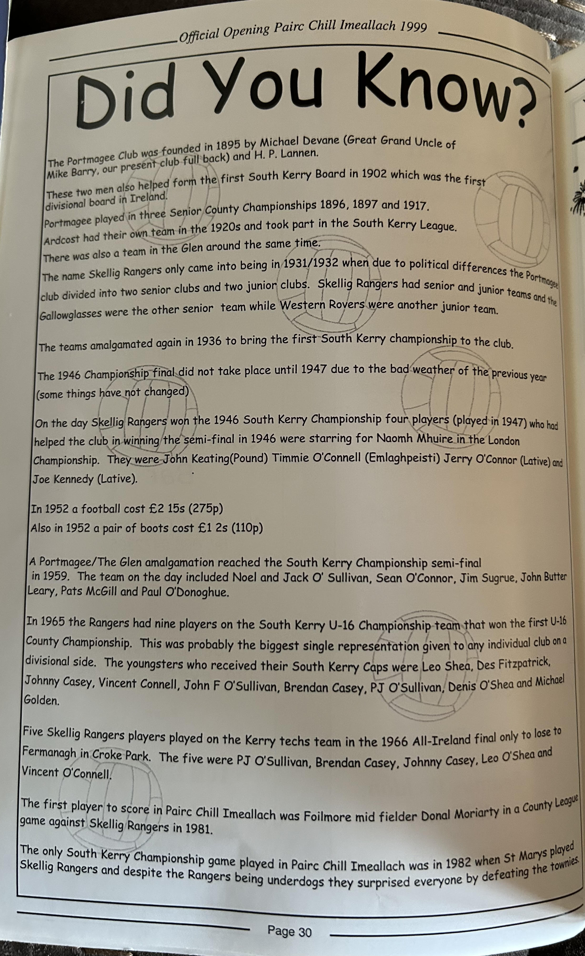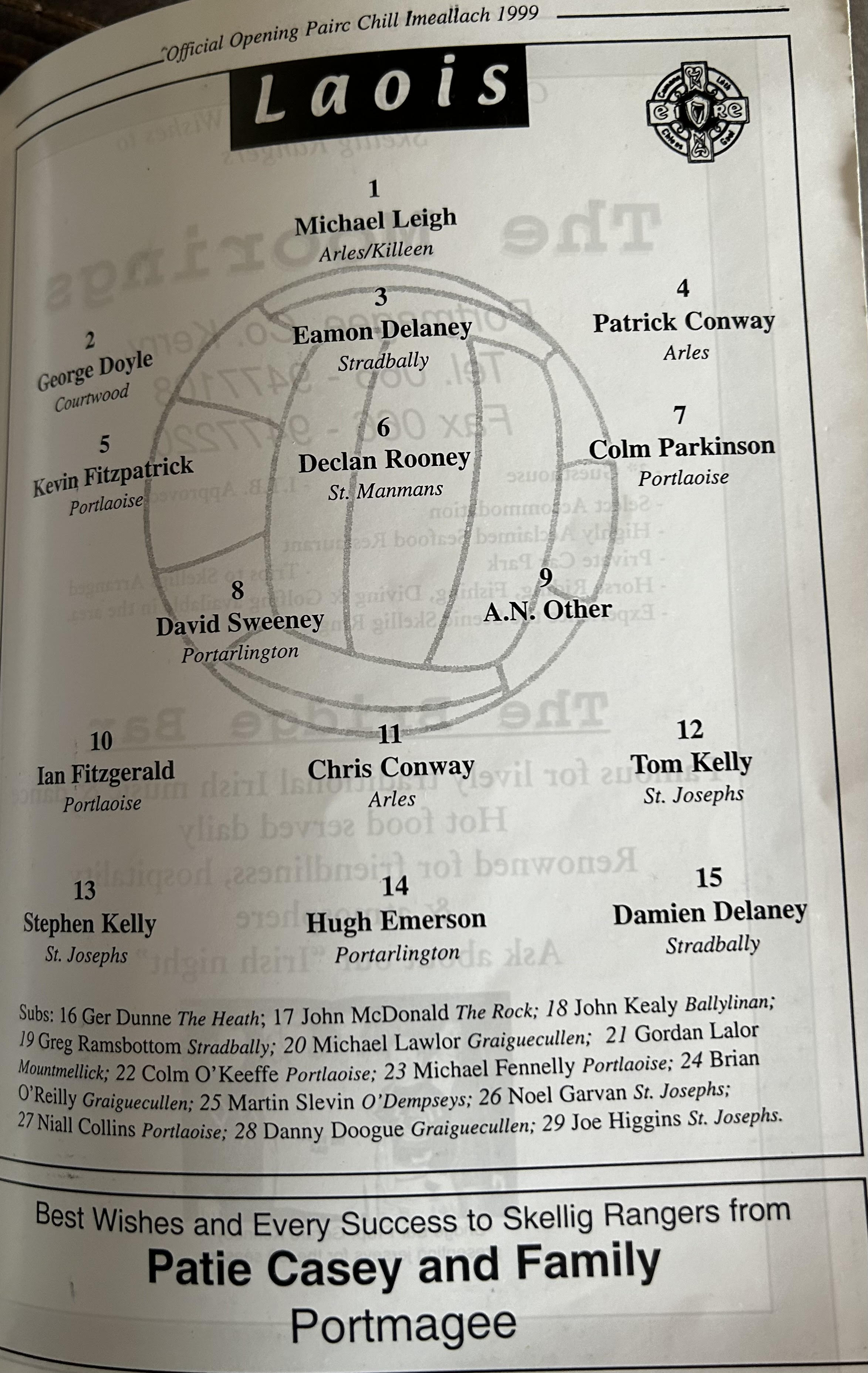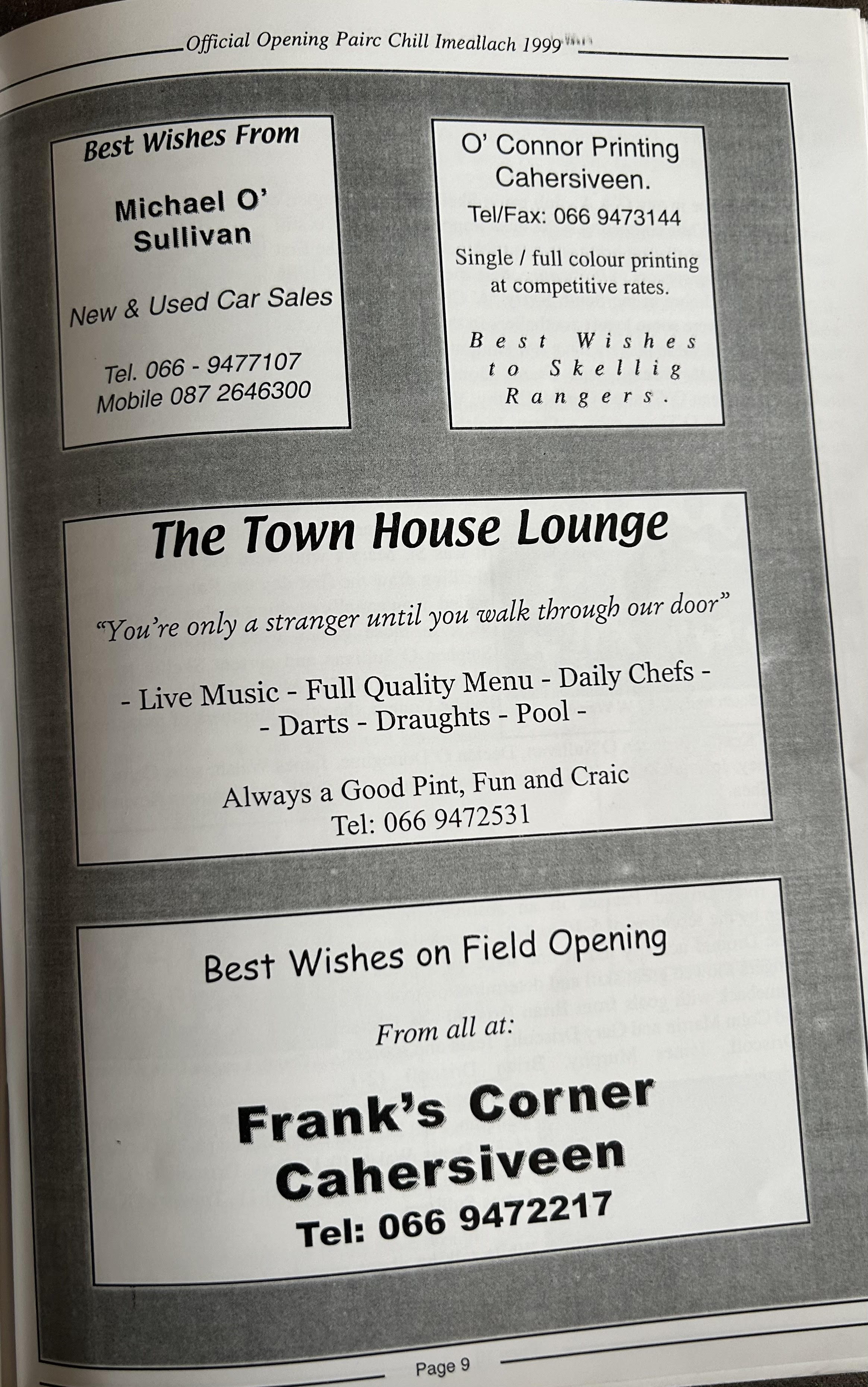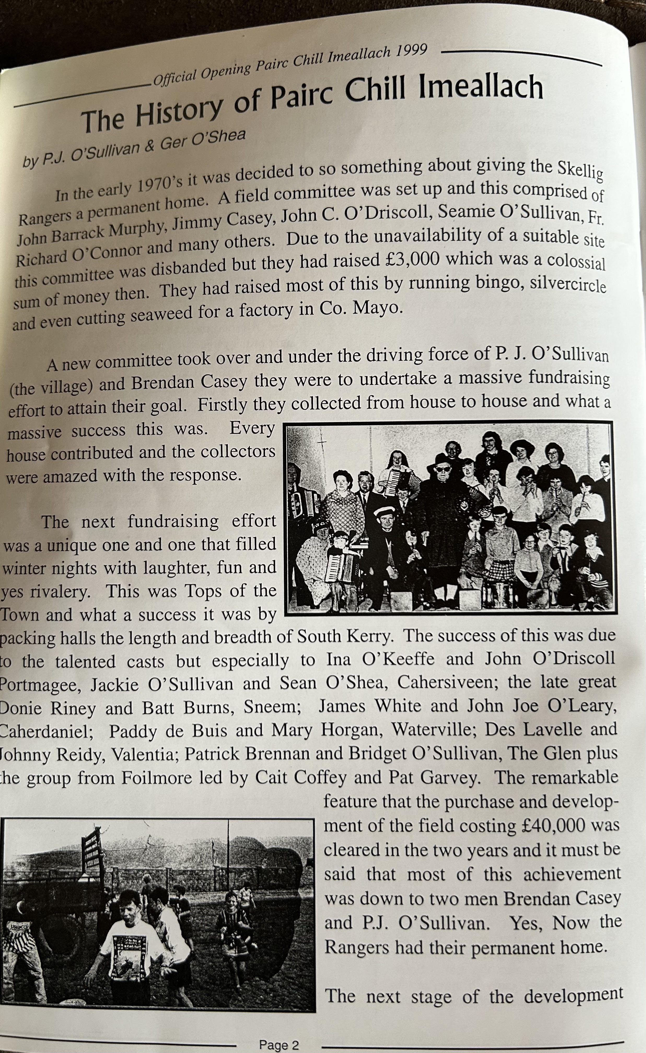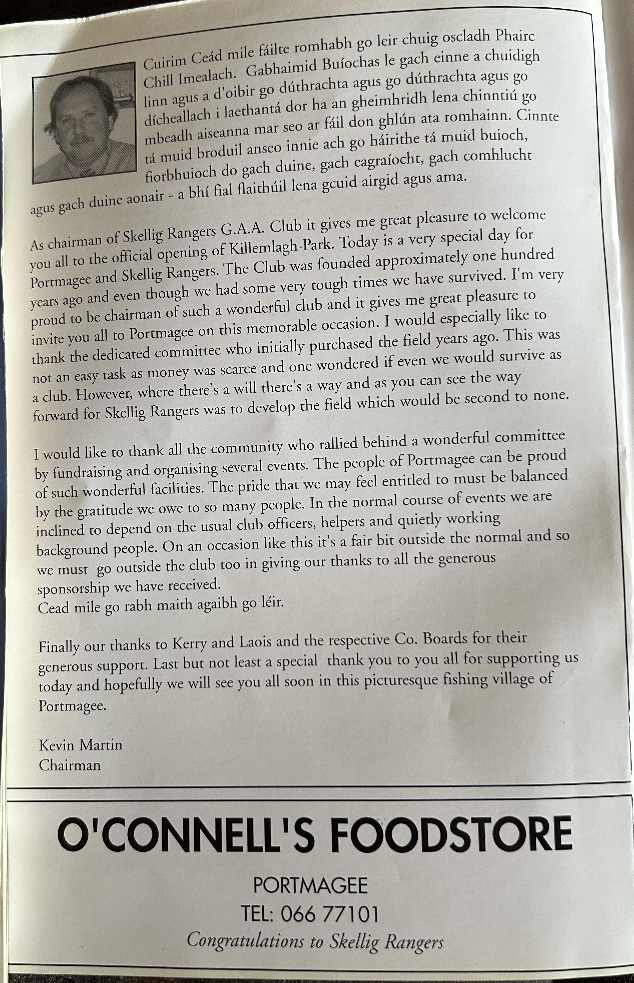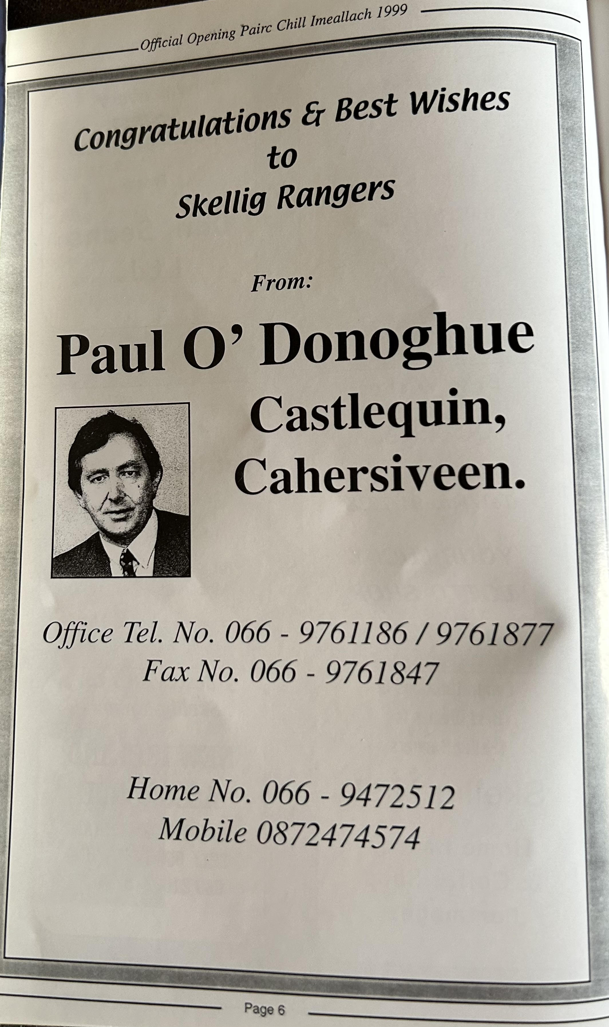 Pairc Chill Imeallach was opened on May 30th 1999. Below is a match report of the opening game played at Pairc Chill Imeallach along with the match day Programme.
