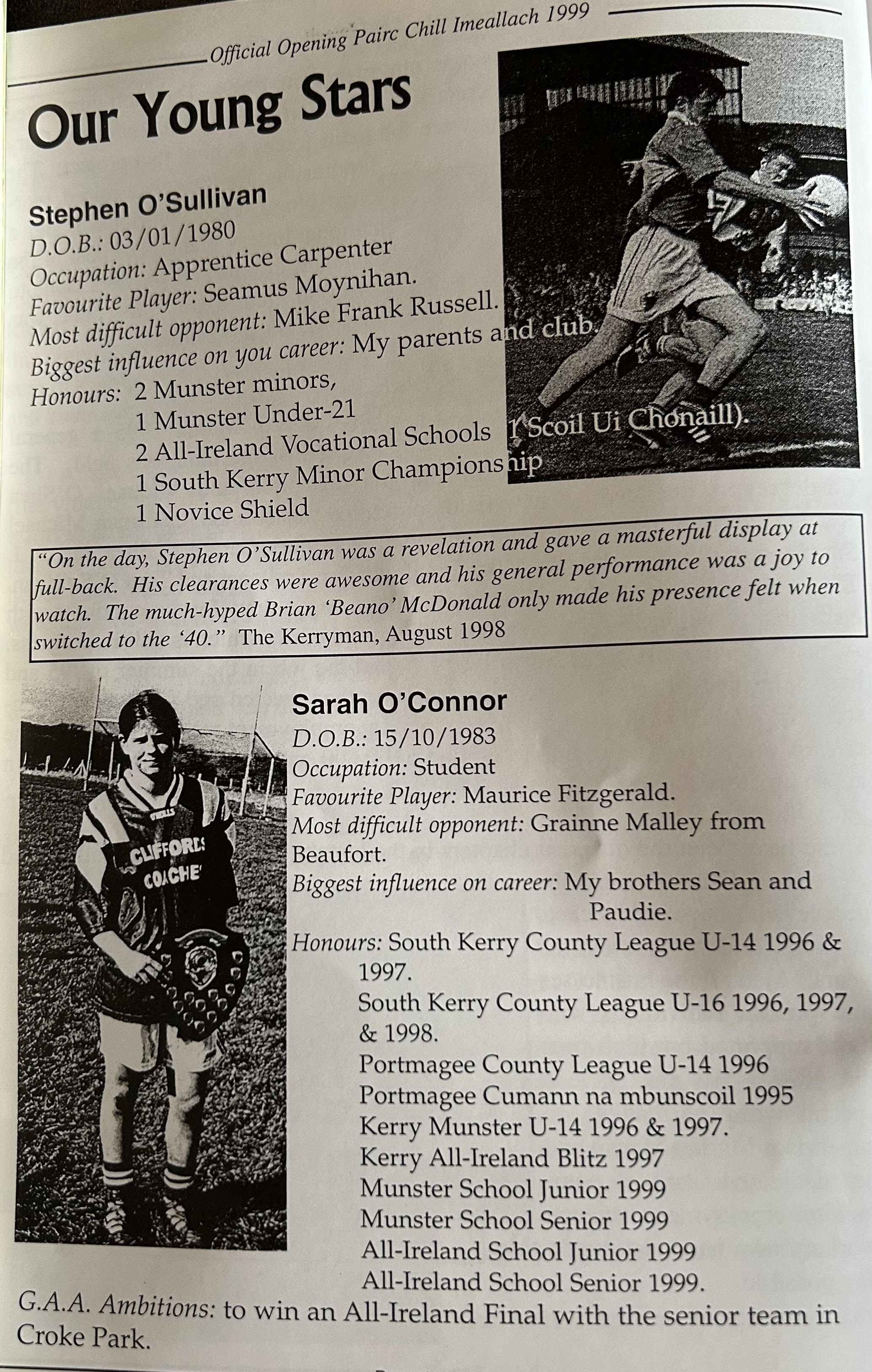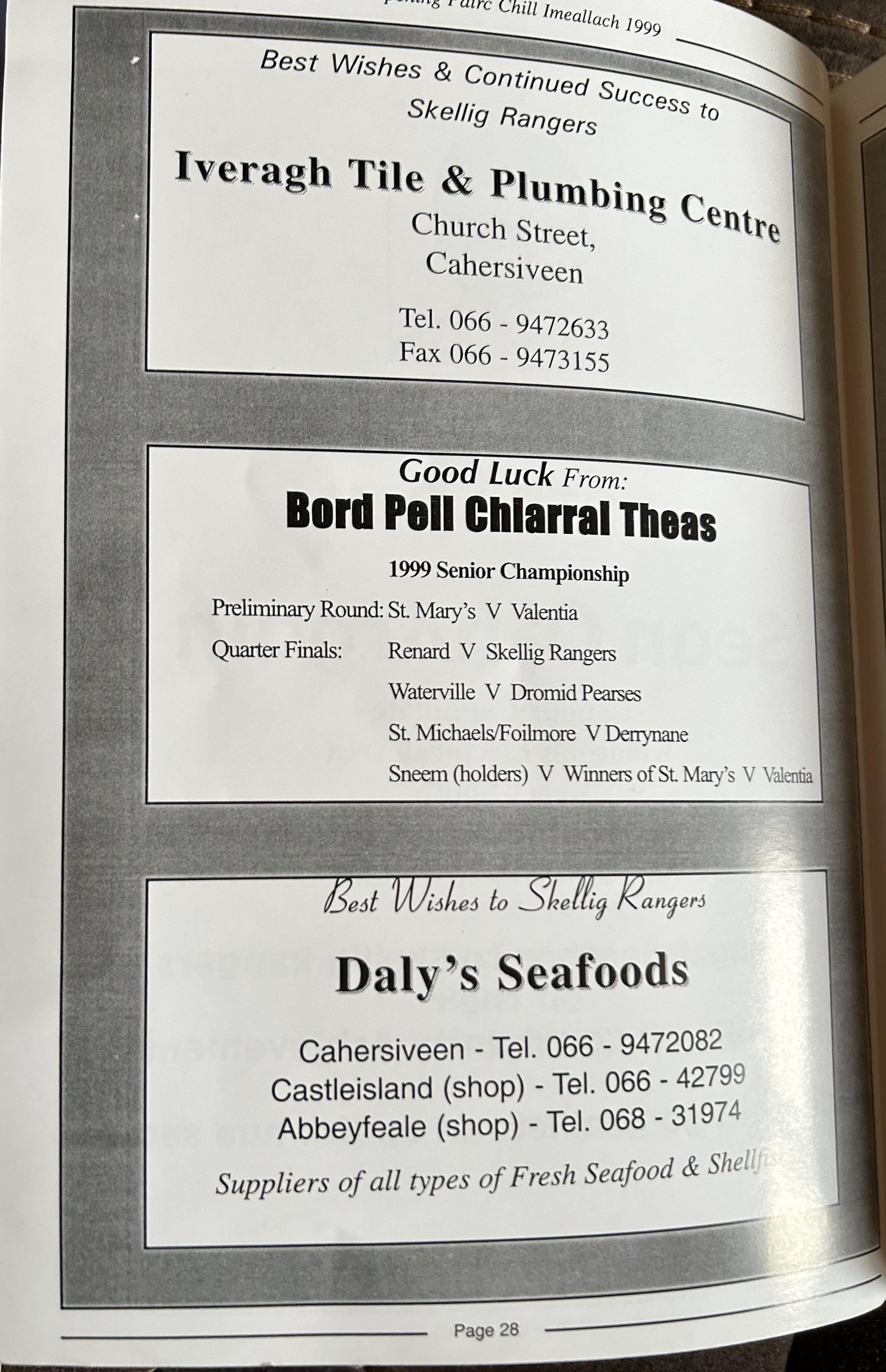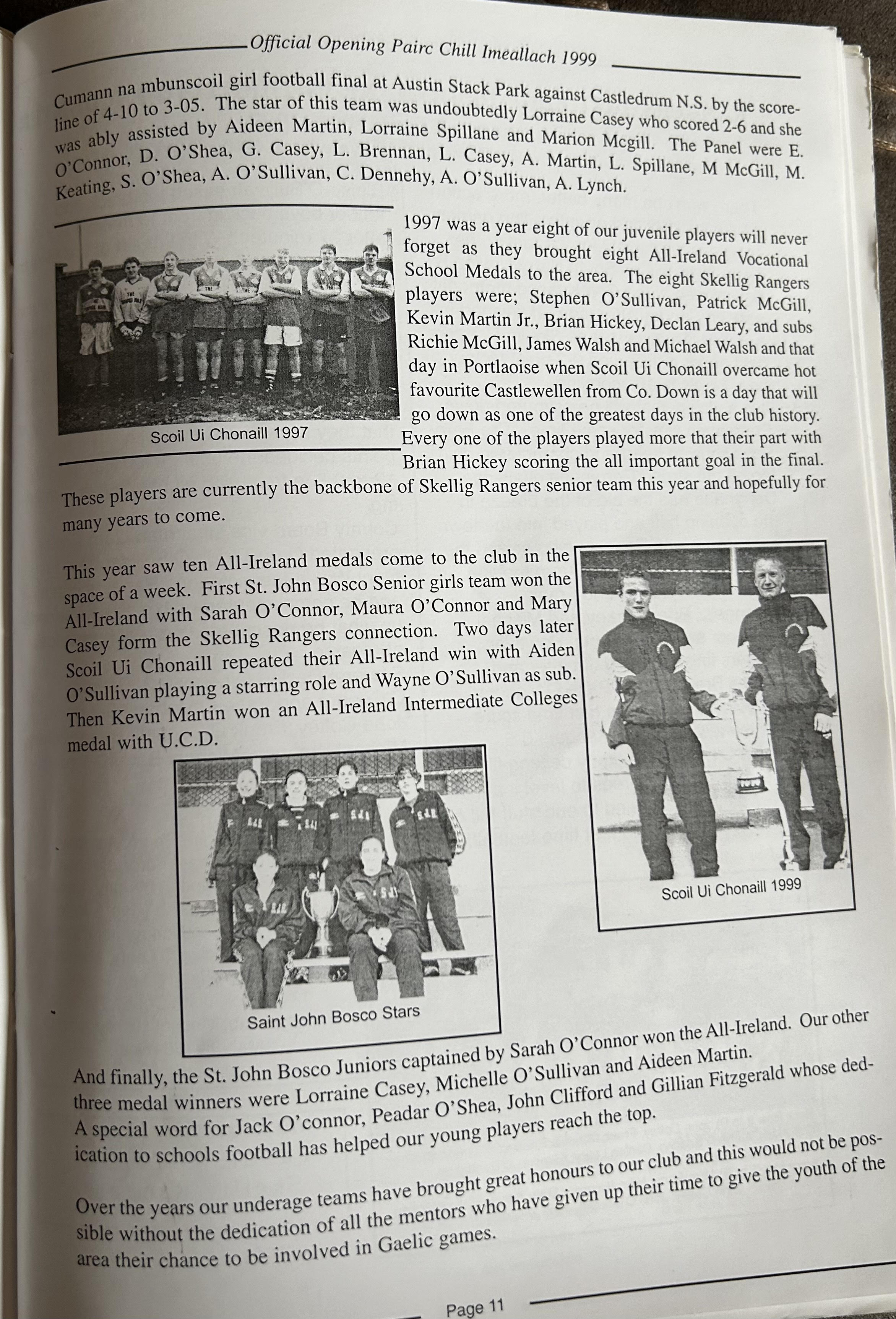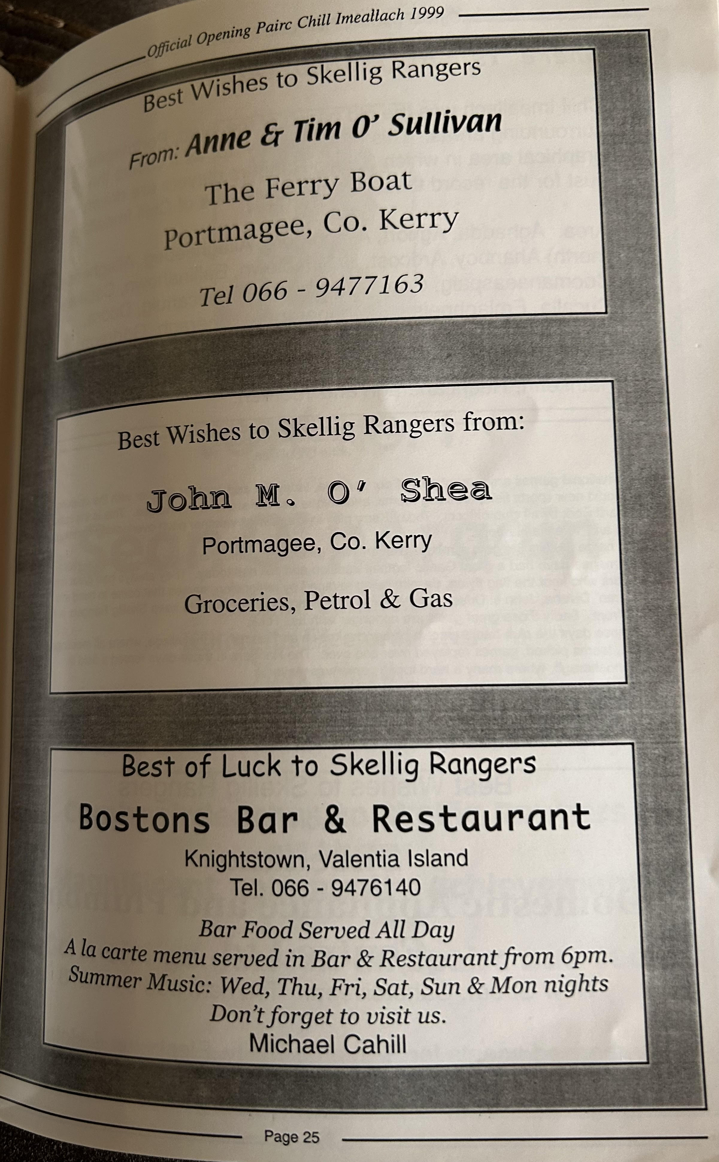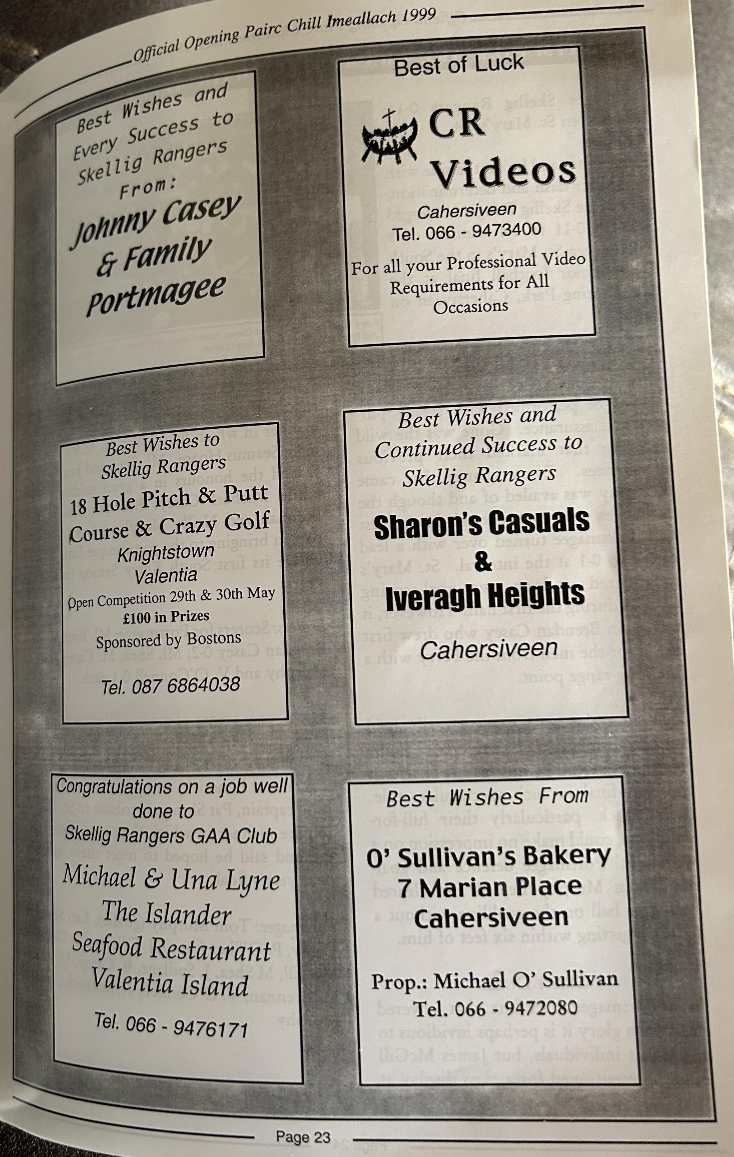 Pairc Chill Imeallach was opened on May 30th 1999. Below is a match report of the opening game played at Pairc Chill Imeallach along with the match day Programme.