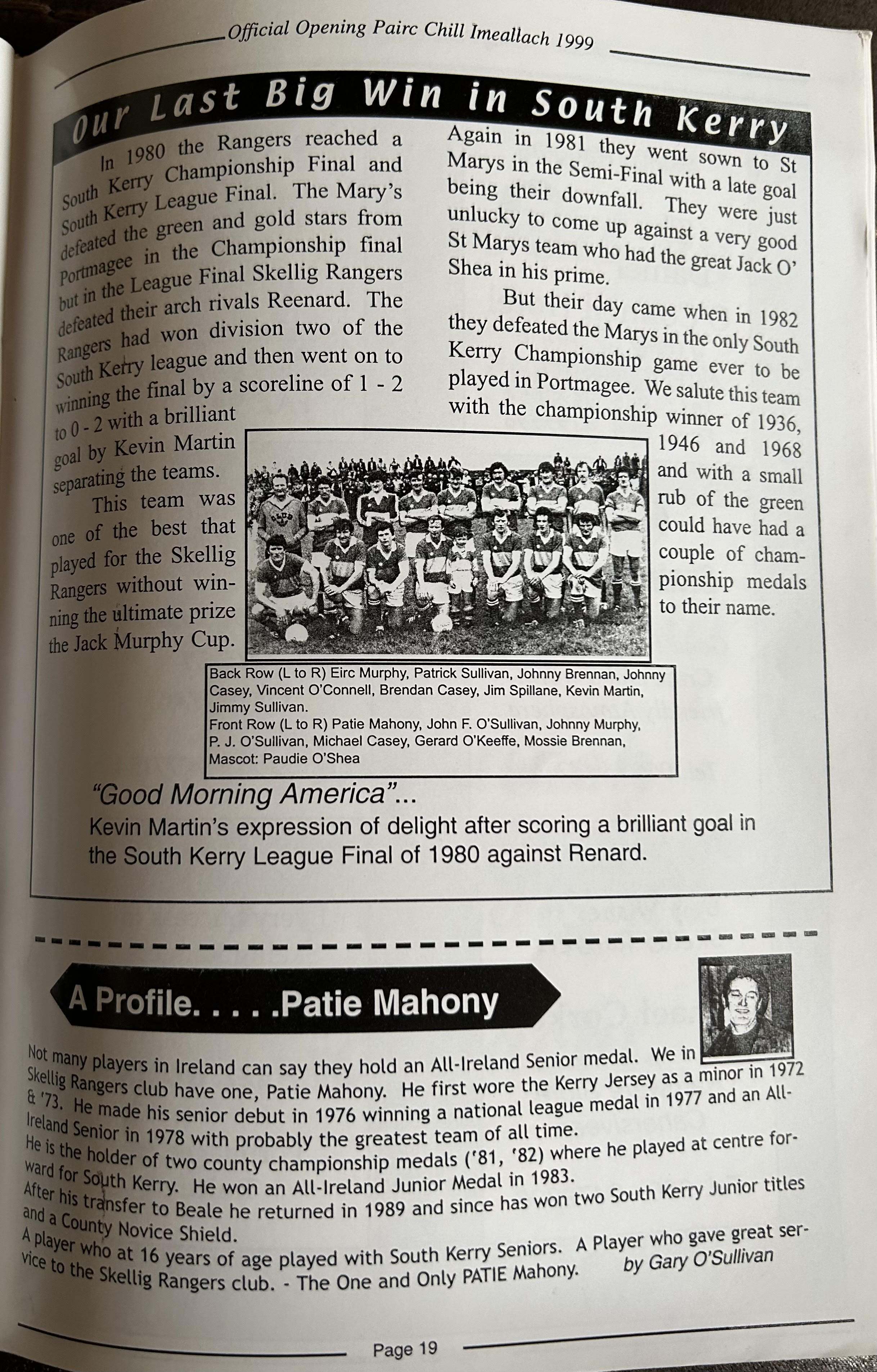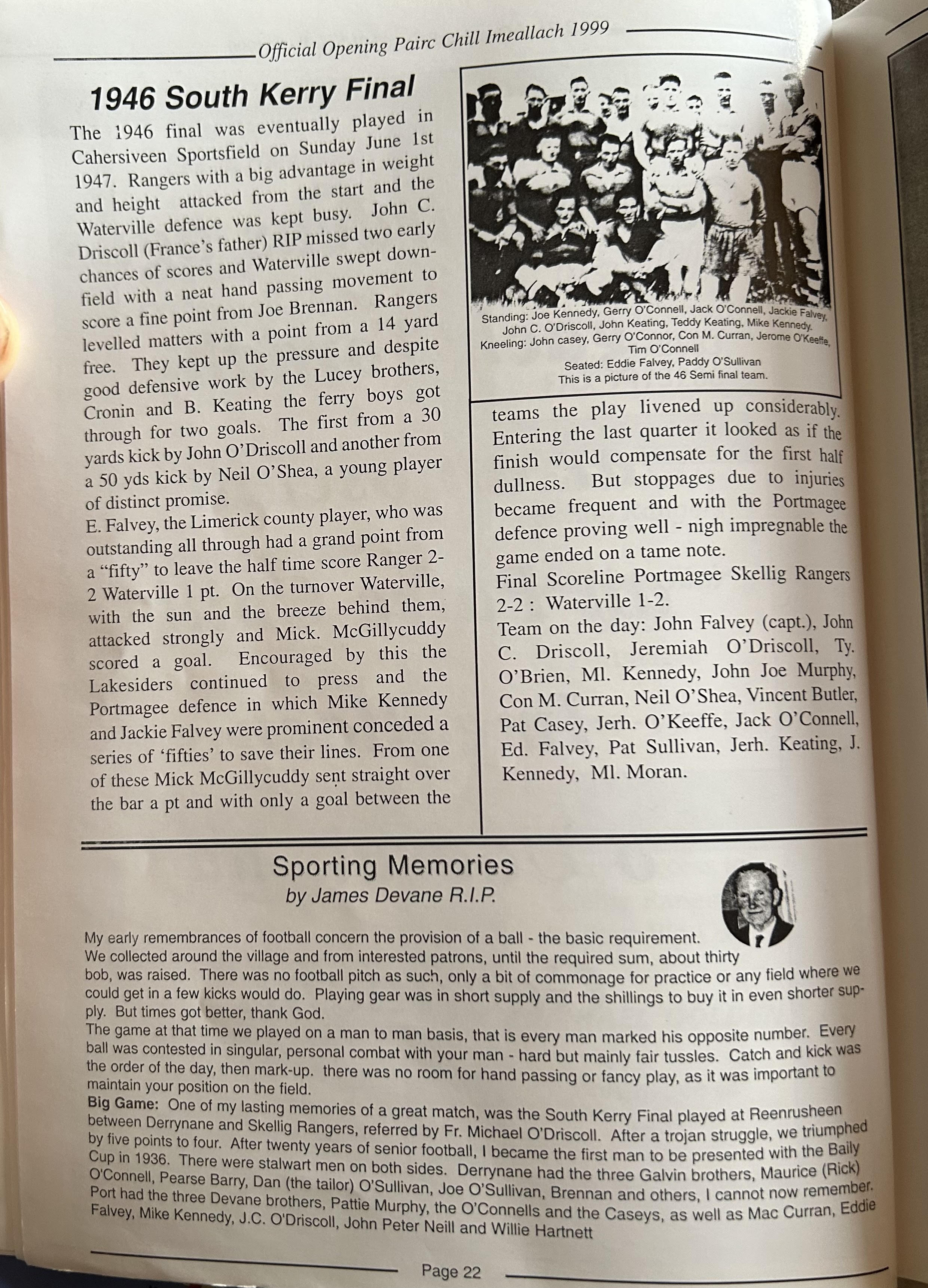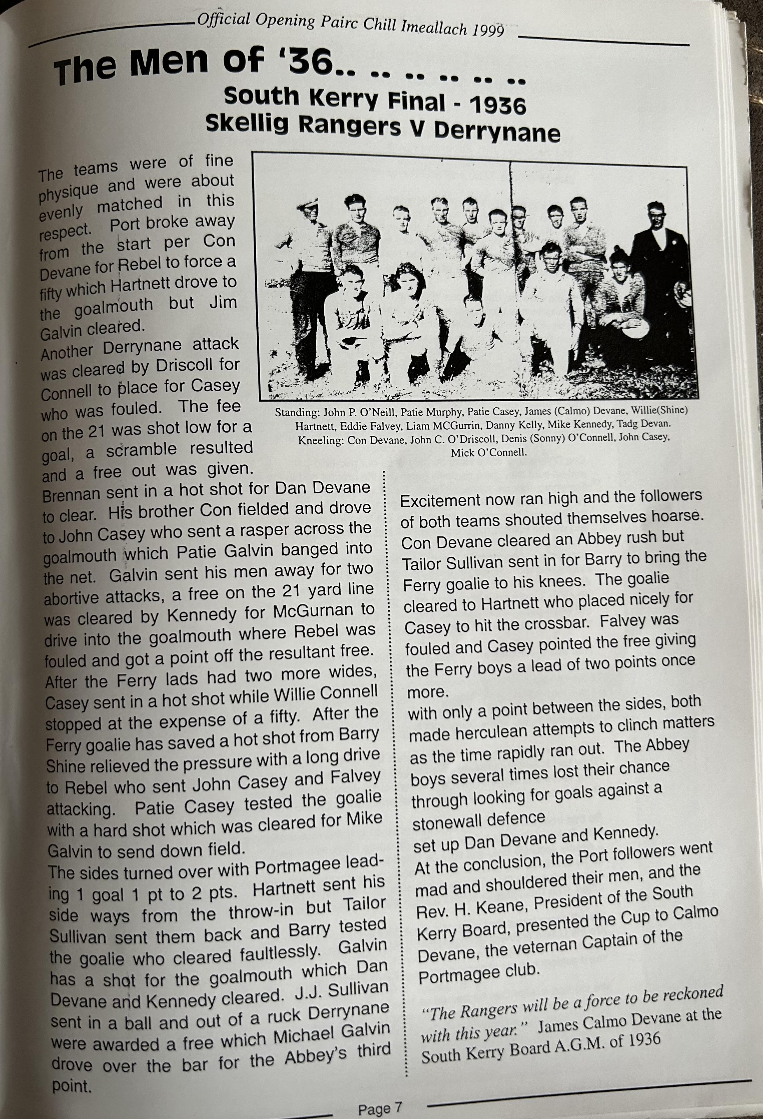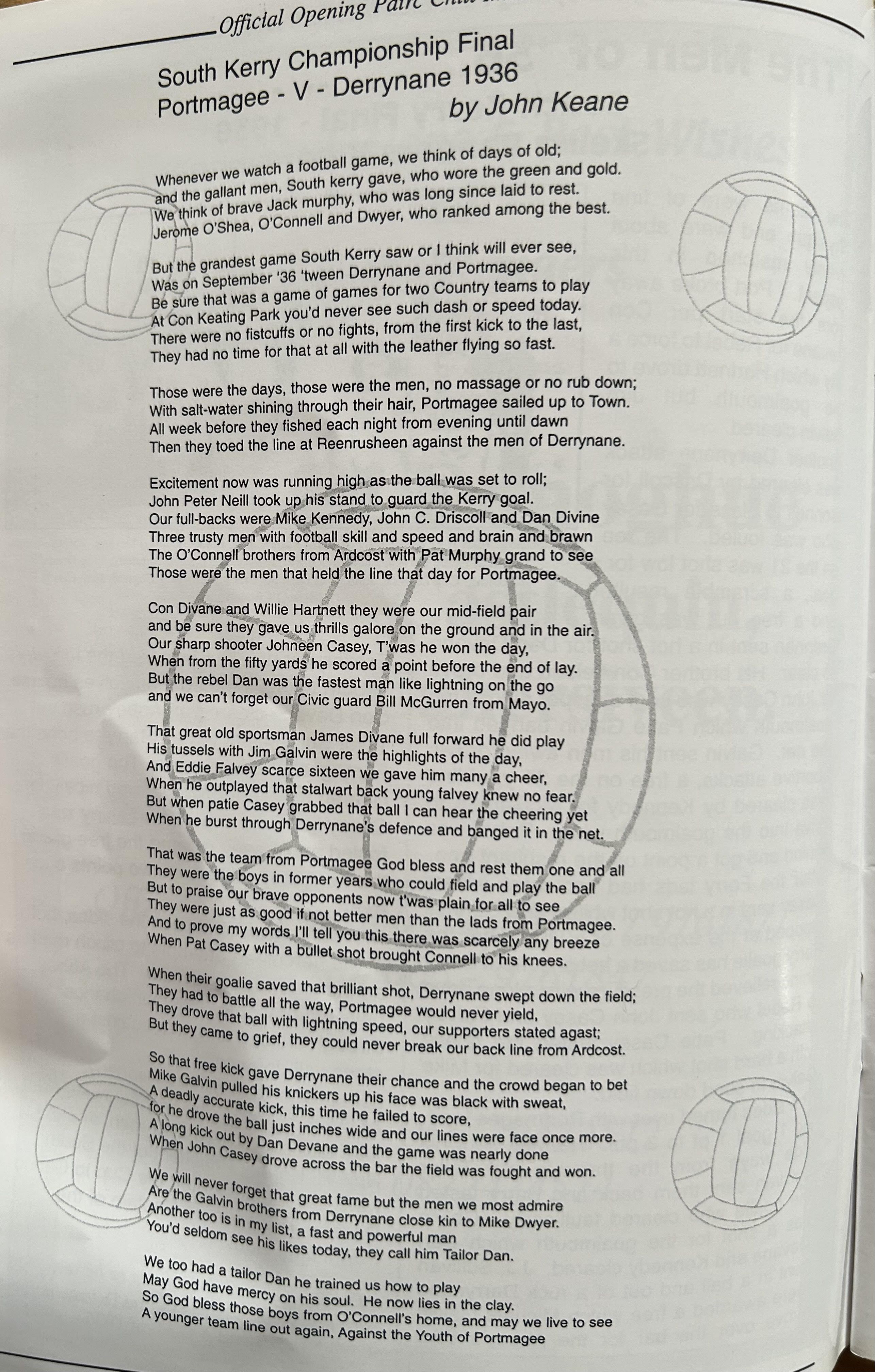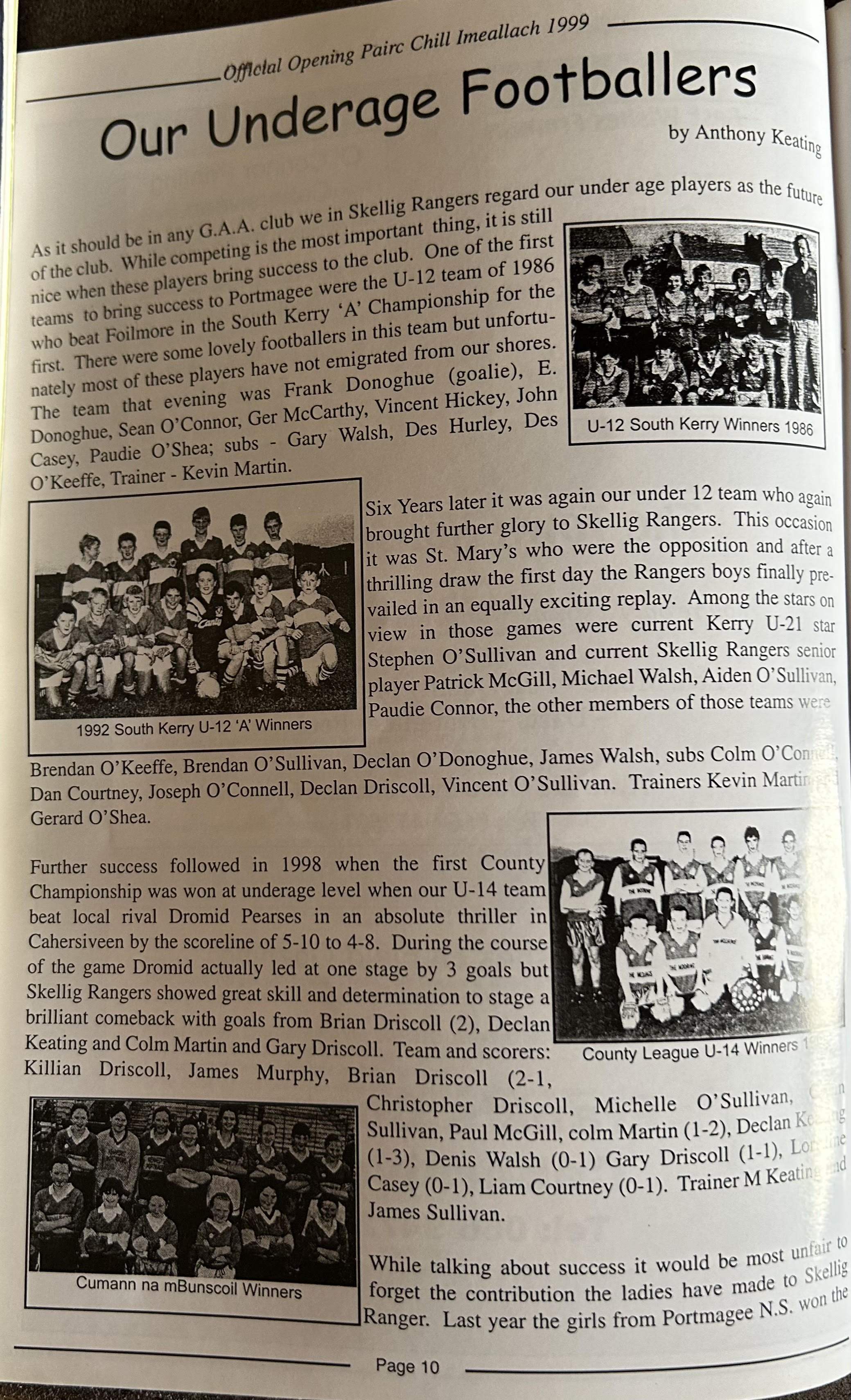 Pairc Chill Imeallach was opened on May 30th 1999. Below is a match report of the opening game played at Pairc Chill Imeallach along with the match day Programme.