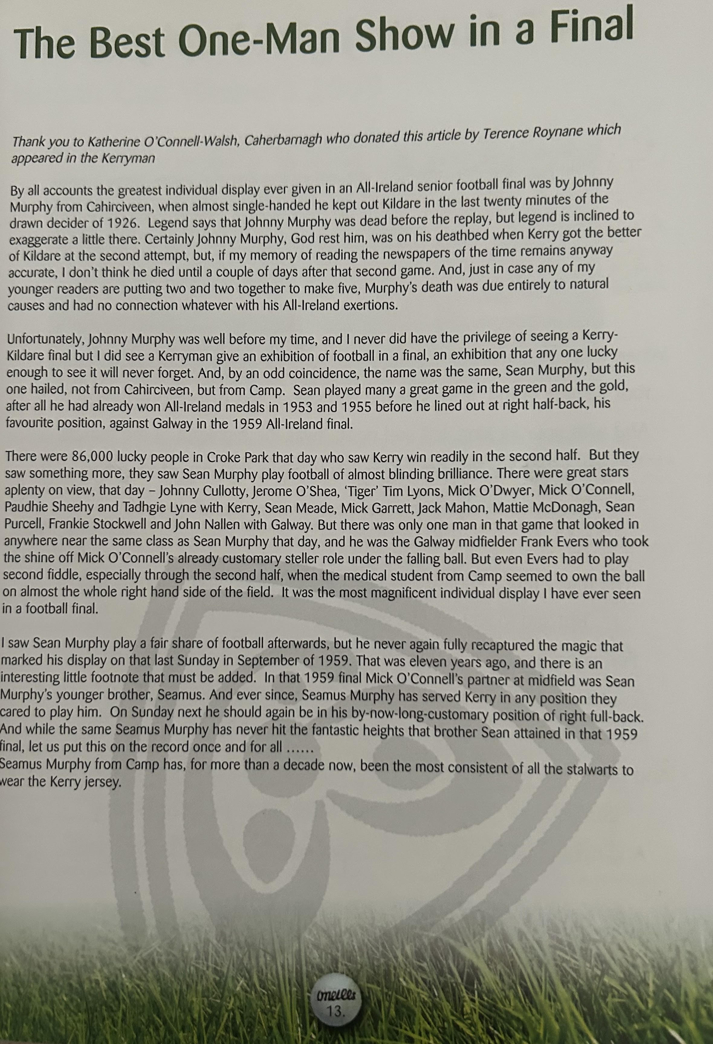 Jack Murphy returns to his native club and the old order’ in South Kerry restored for the moment.