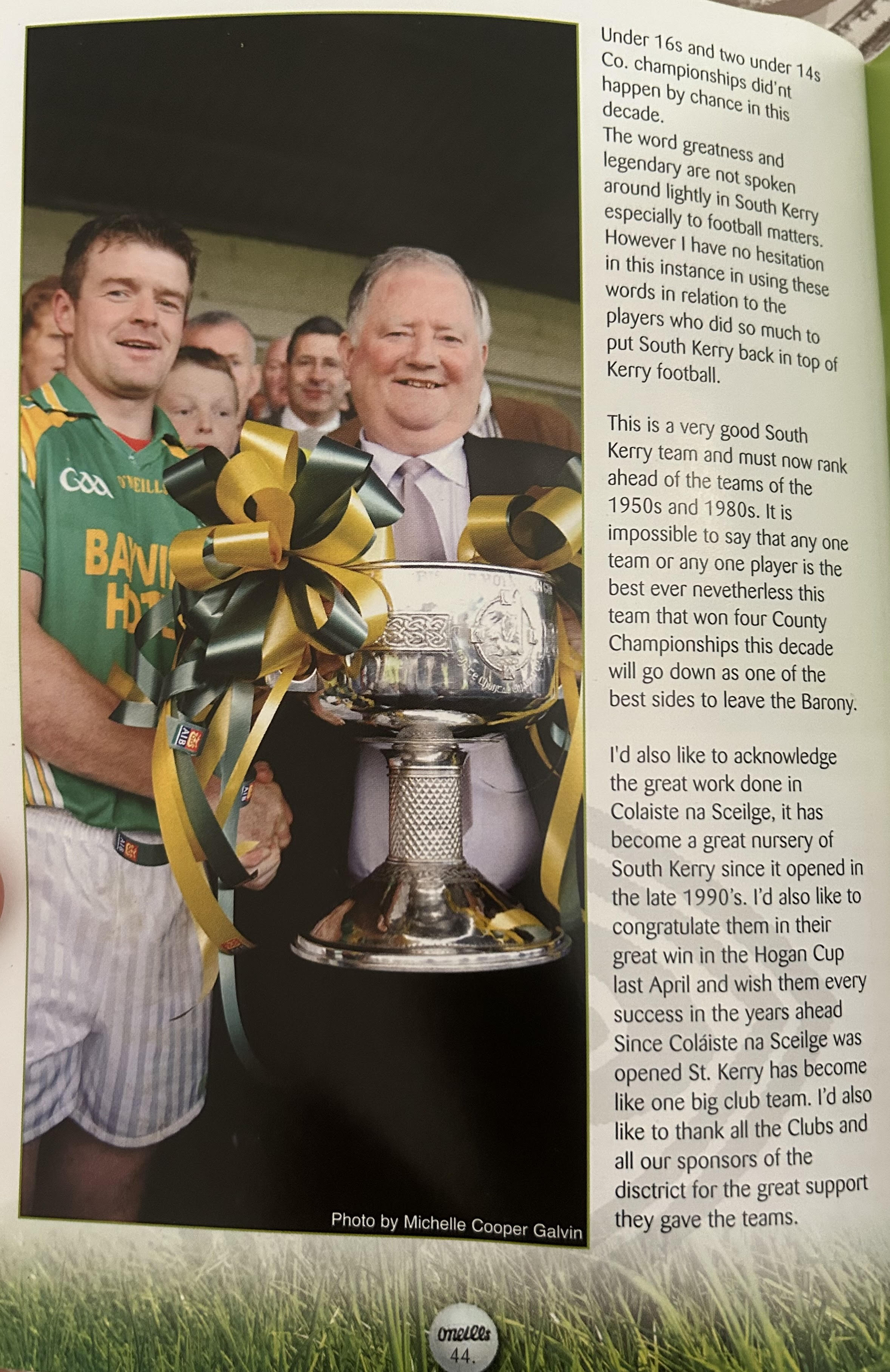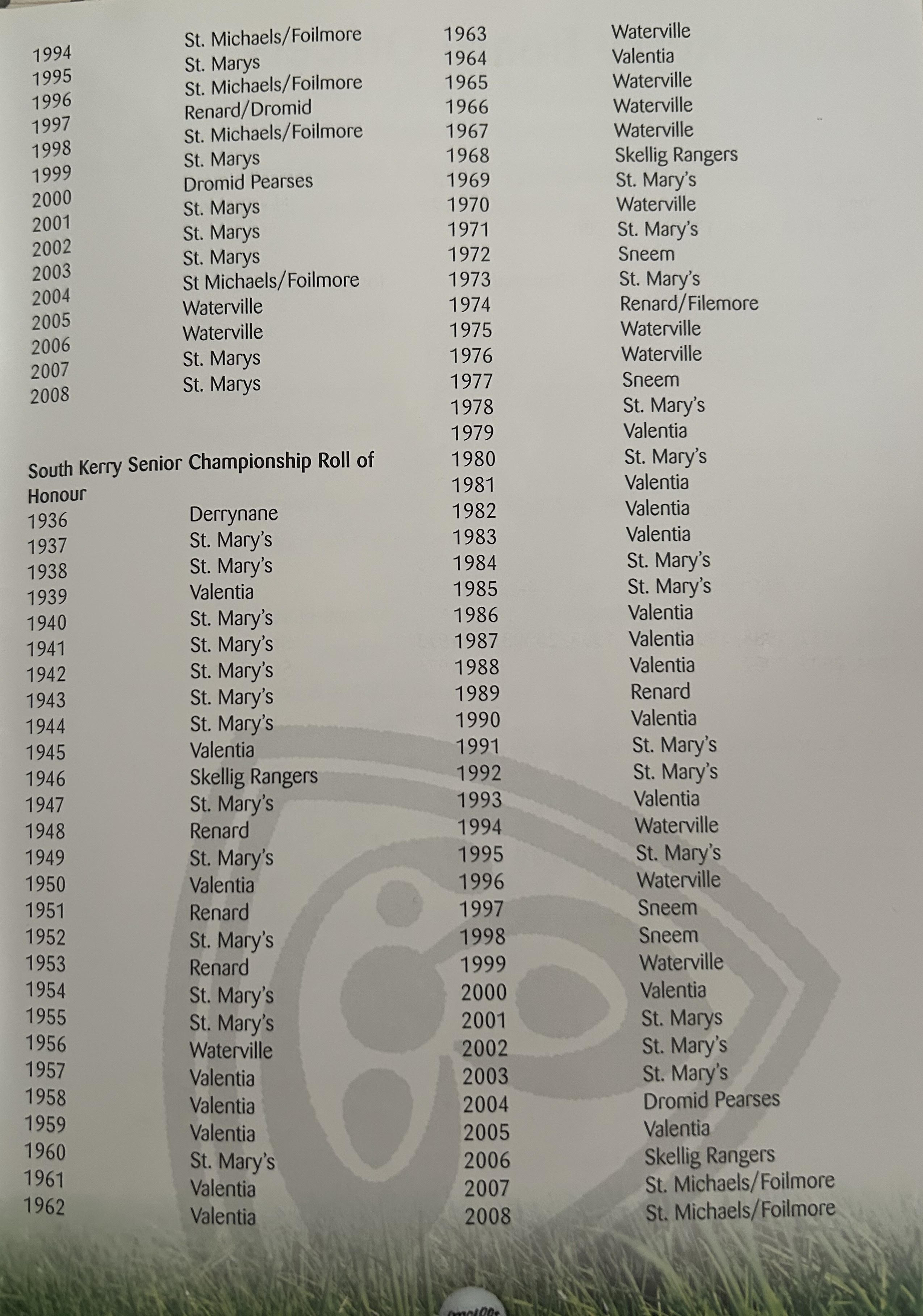 Mary’s 26th South Kerry Title comes after a six year wait and one that owed much to the good fortune of Sheehan’s point and Maurice Fitzgerald’ goal in the first half. Still they showed how they learned the mistakes from their game against Beaufort during the summer in terms of taking their chances when presented to them. Skellig will rue their missed opportunities, ones they could have easily taken on another day, but it has still been a phenomenal year for the Portmagee club with All-Ireland glory back on Valentines Day.