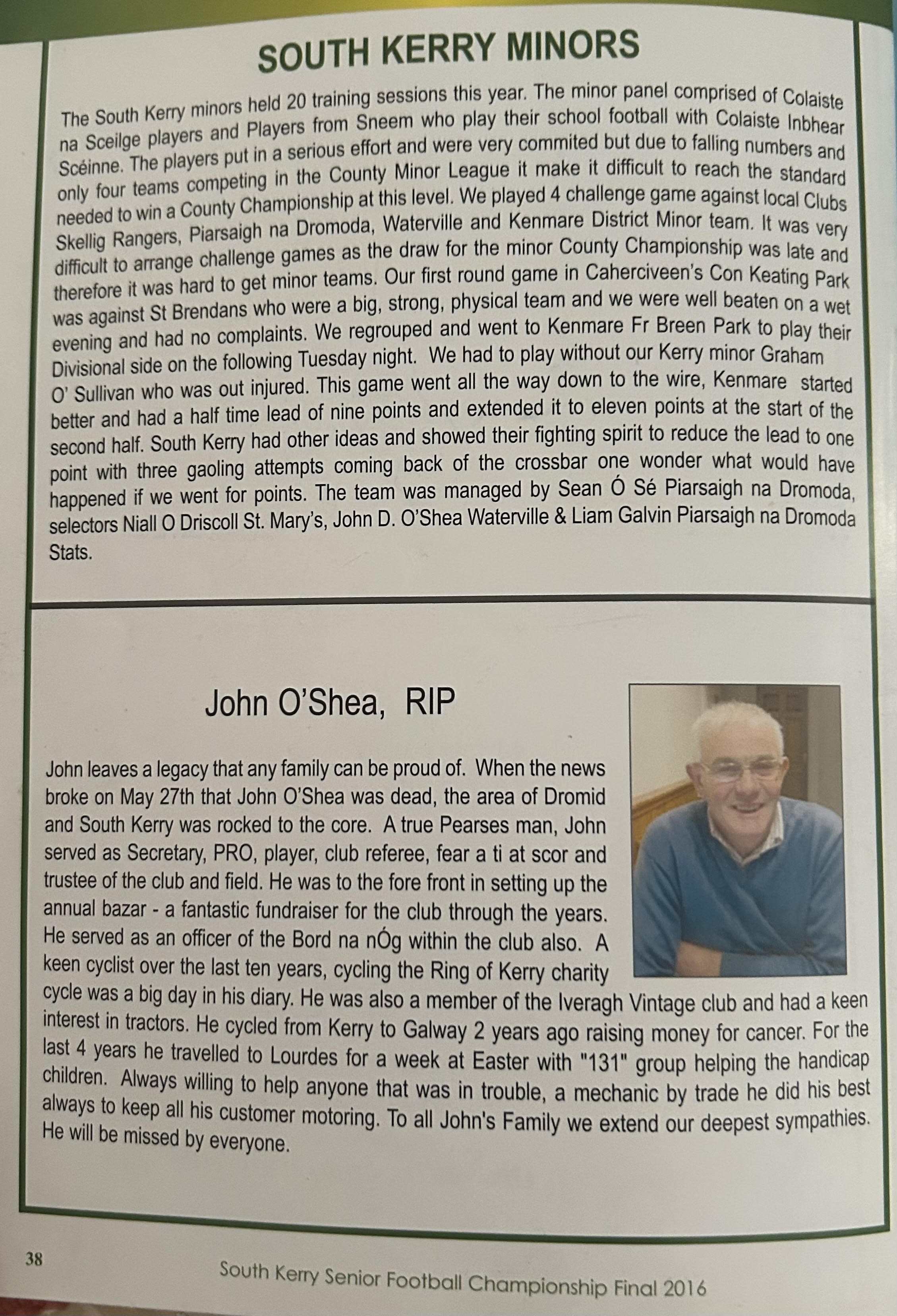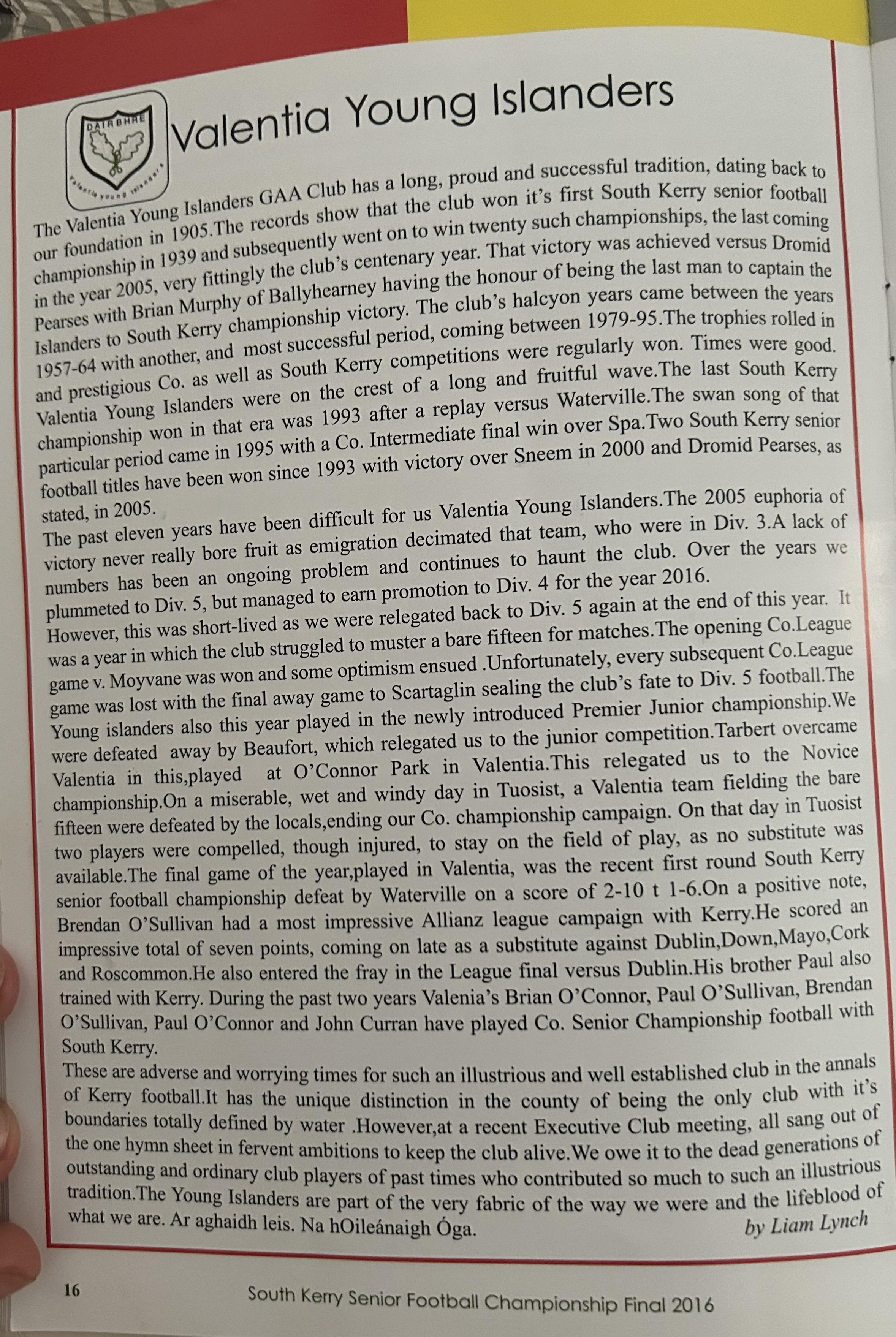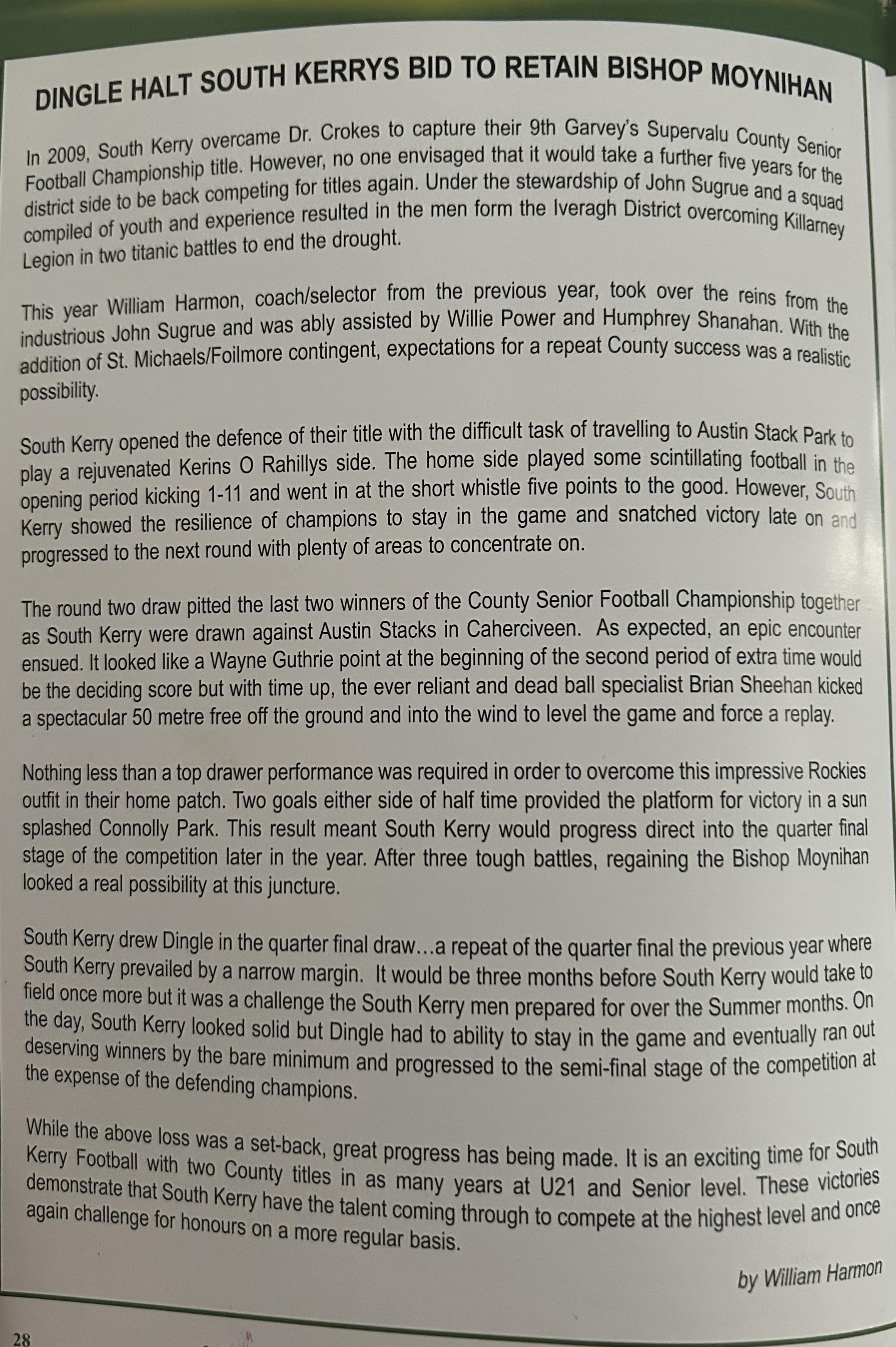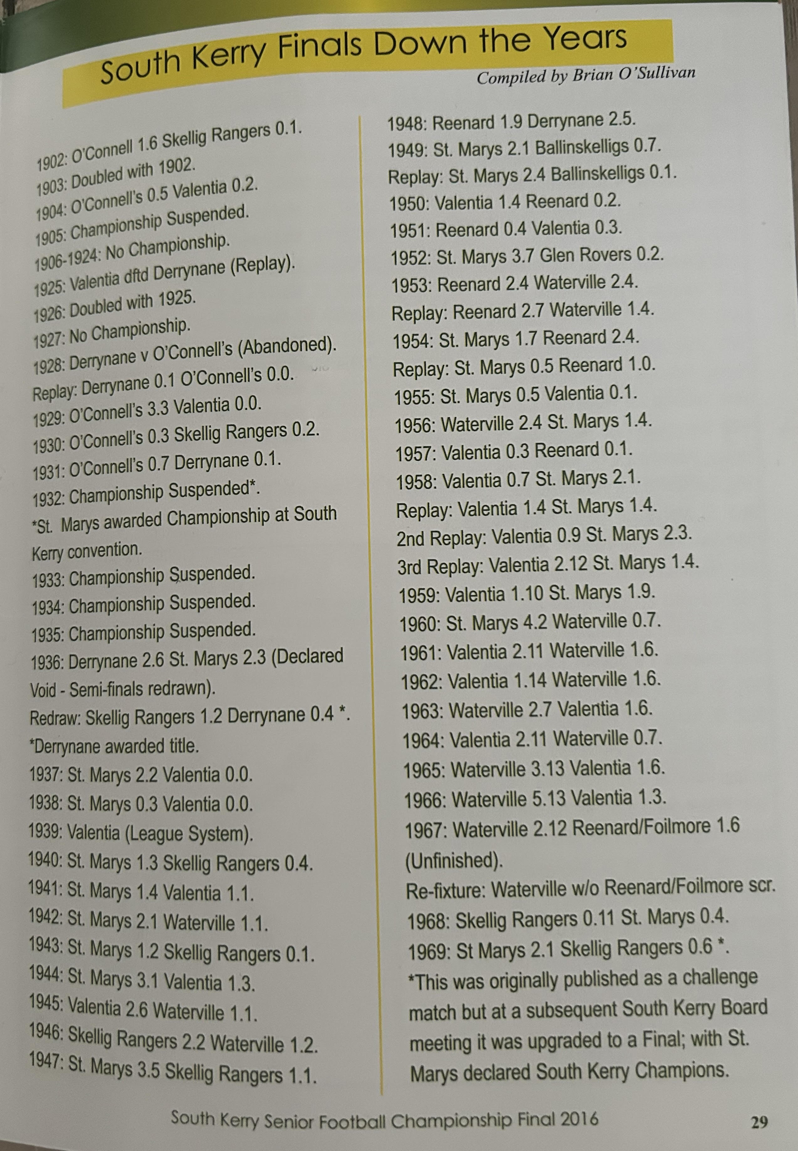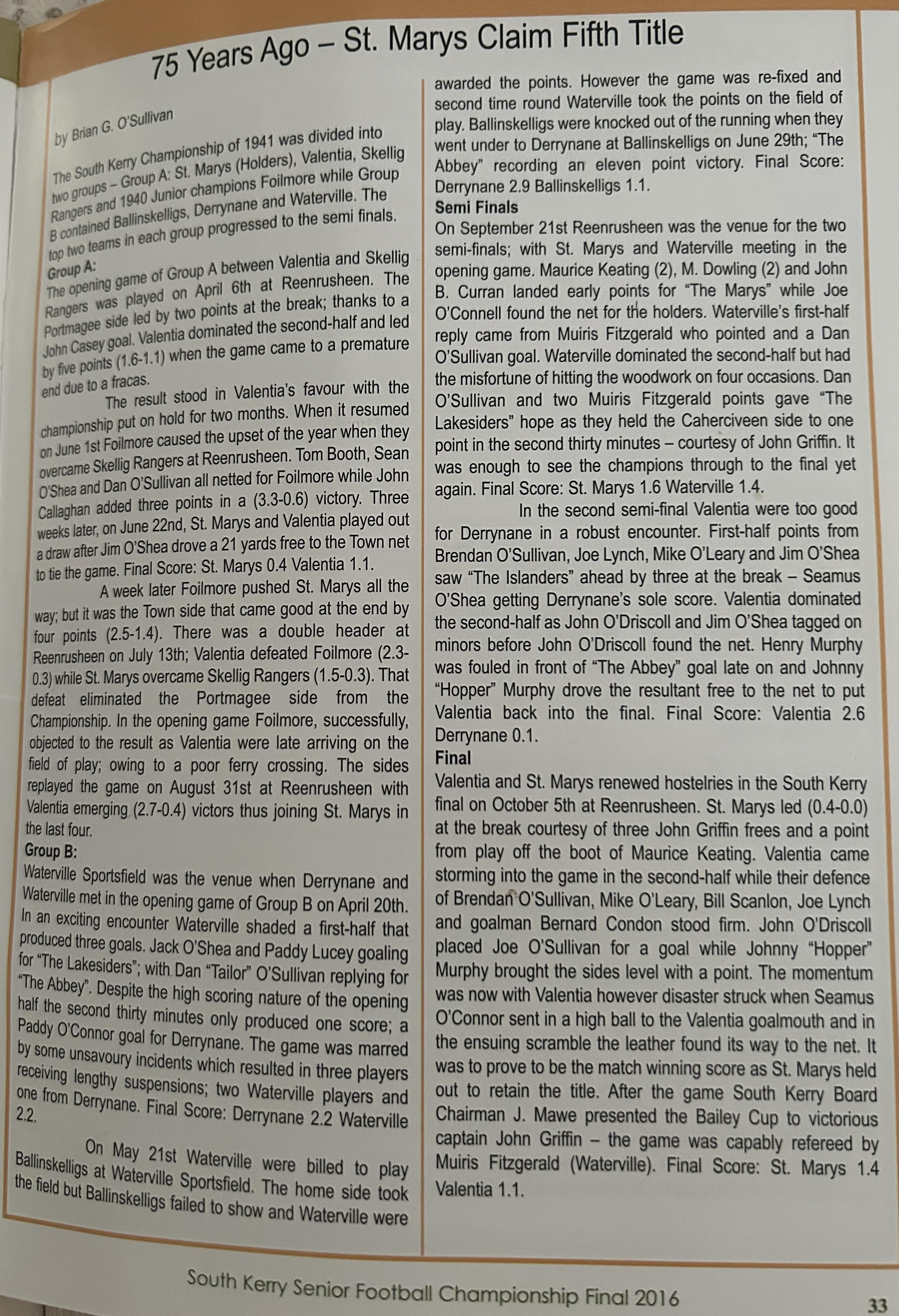 SKELLIG RANGERS: Padraig O’Sulivan, Stephen L O’Sulivan, Stephen O’Sulivan, Gerard O’Sullivan, Brendan Murphy, Bernard Walsh, Seamus O’Sullivan, Anthony ‘Driscoll, Christopher Driscoll, John Murphy, Ronan O’Shea, Brendan O’Sullivan, Diarmud Keating (1-0), Brian Hickey (0-1), Ciaran Keating (0-5, 4f). Subs: Michael O’Sullivan for J Murphy, Alan Devane for B O’Sullivan, Aiden O’Sullivan for Seamus O’Sullivan, Sean Courtney for B Hickey, Martin O’Sullivan for A Devane (B/C) Brien Murphy for C ‘Driscoll.