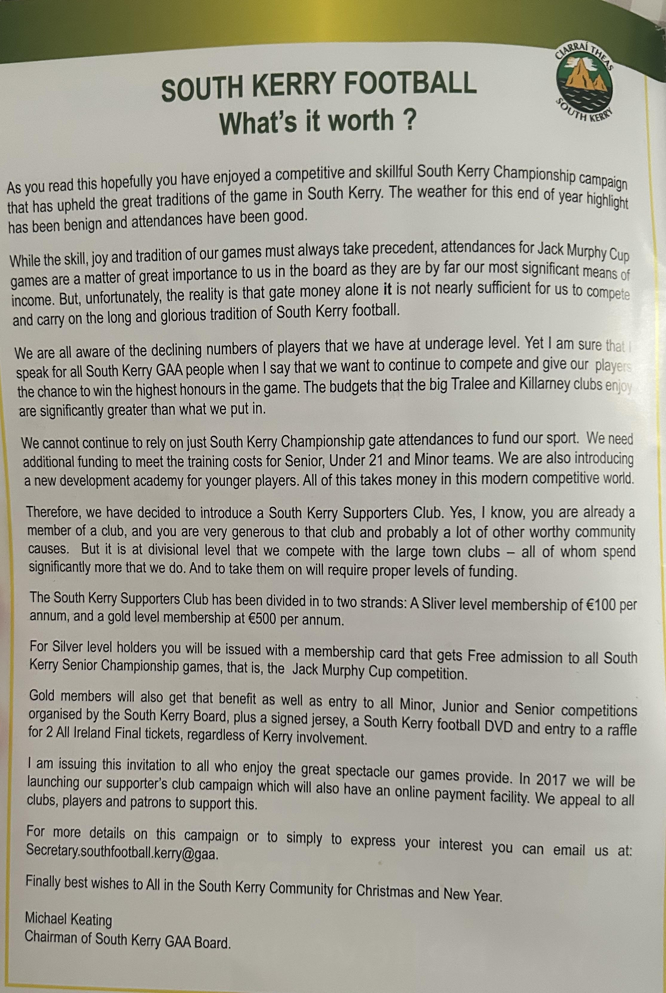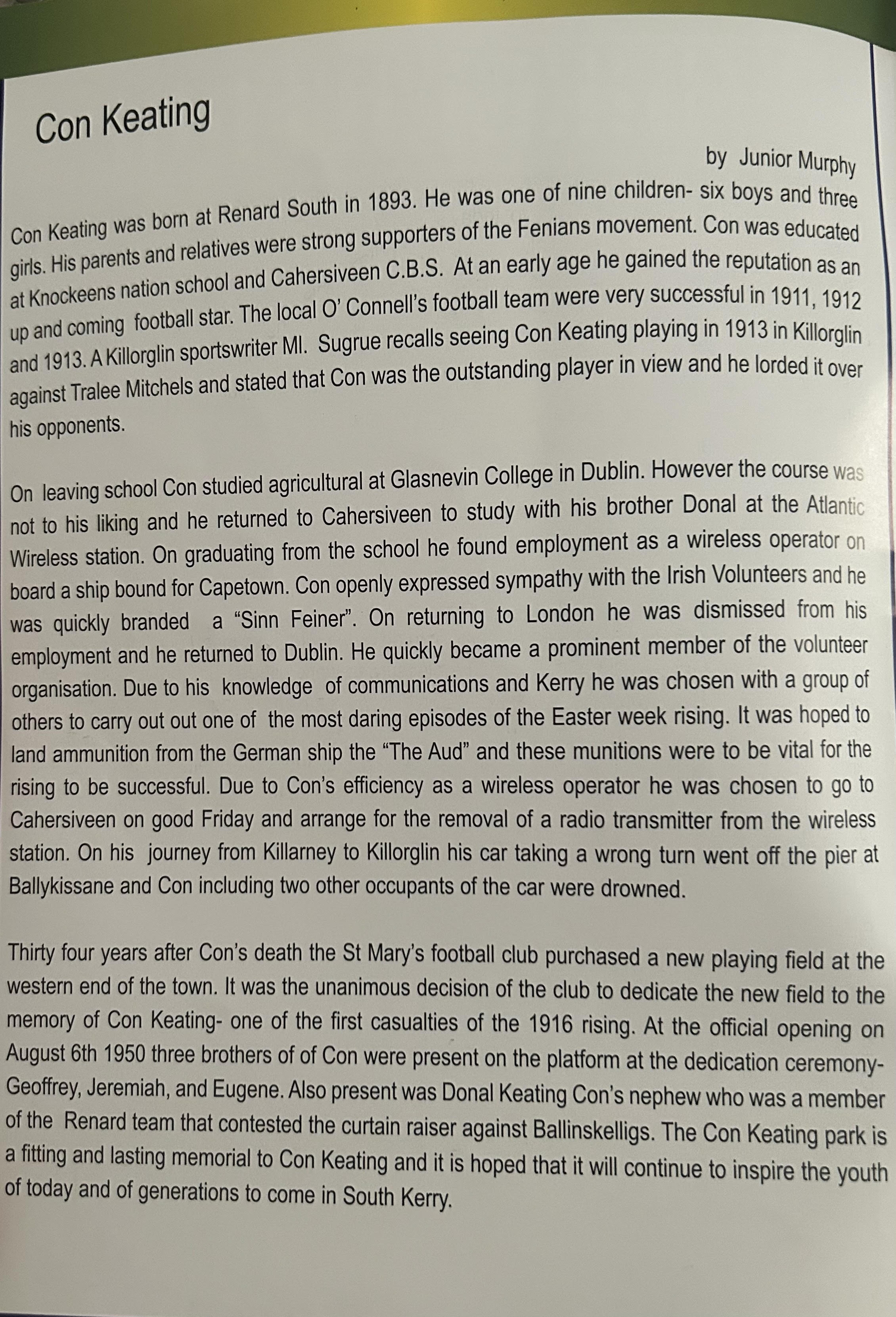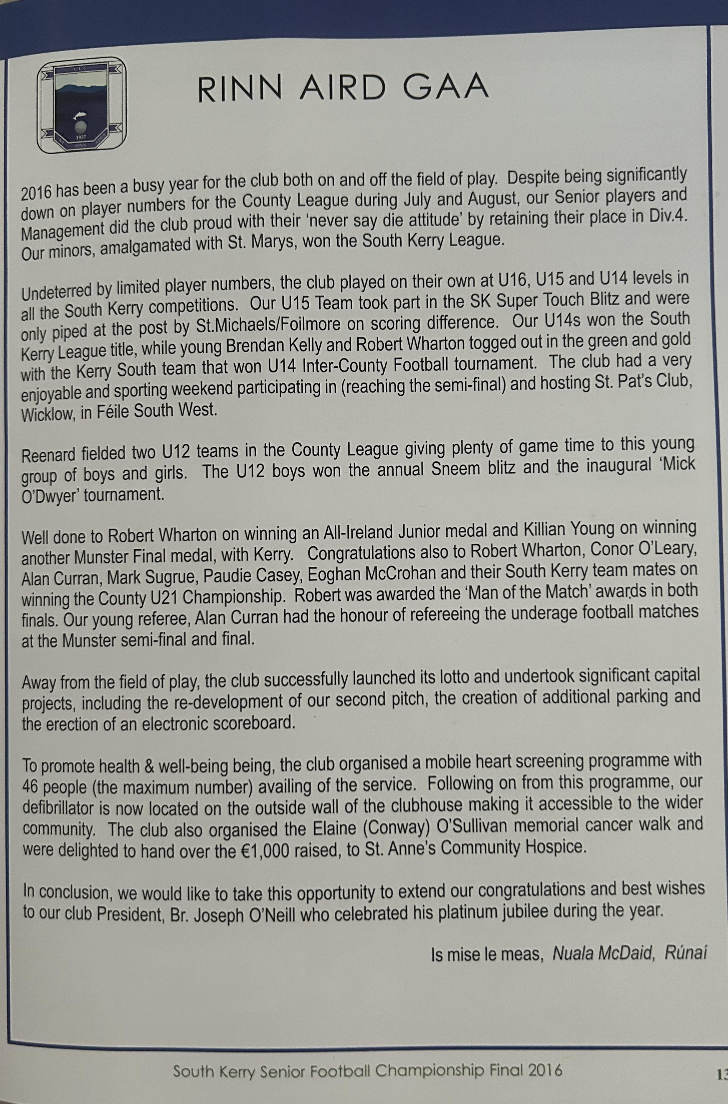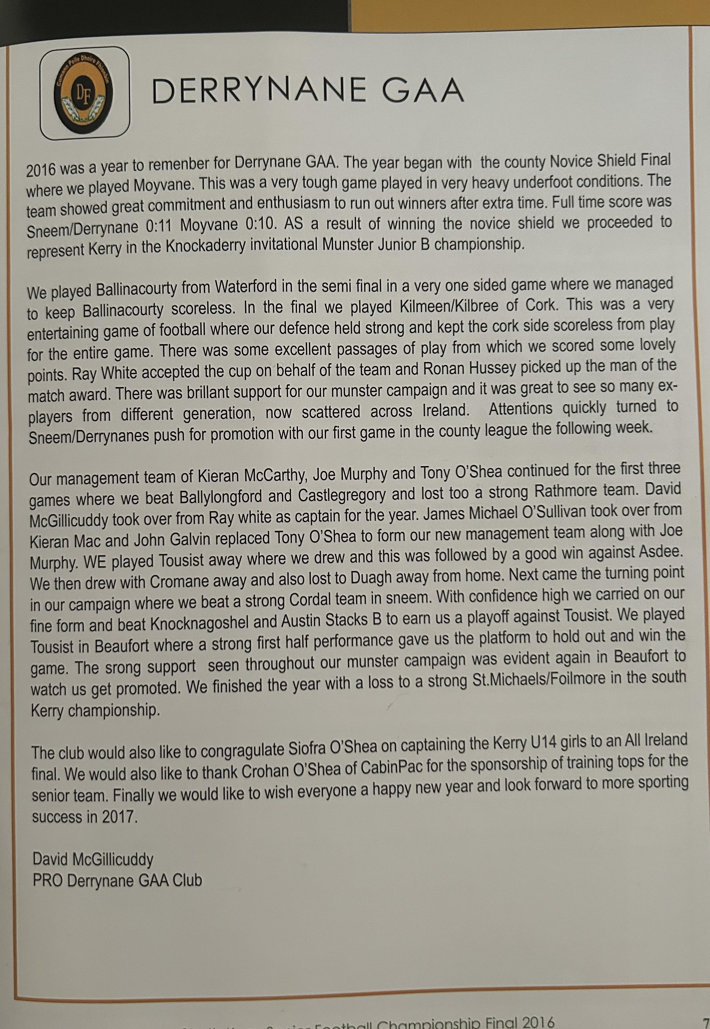 SKELLIG RANGERS: Padraig O’Sulivan, Stephen L O’Sulivan, Stephen O’Sulivan, Gerard O’Sullivan, Brendan Murphy, Bernard Walsh, Seamus O’Sullivan, Anthony ‘Driscoll, Christopher Driscoll, John Murphy, Ronan O’Shea, Brendan O’Sullivan, Diarmud Keating (1-0), Brian Hickey (0-1), Ciaran Keating (0-5, 4f). Subs: Michael O’Sullivan for J Murphy, Alan Devane for B O’Sullivan, Aiden O’Sullivan for Seamus O’Sullivan, Sean Courtney for B Hickey, Martin O’Sullivan for A Devane (B/C) Brien Murphy for C ‘Driscoll.