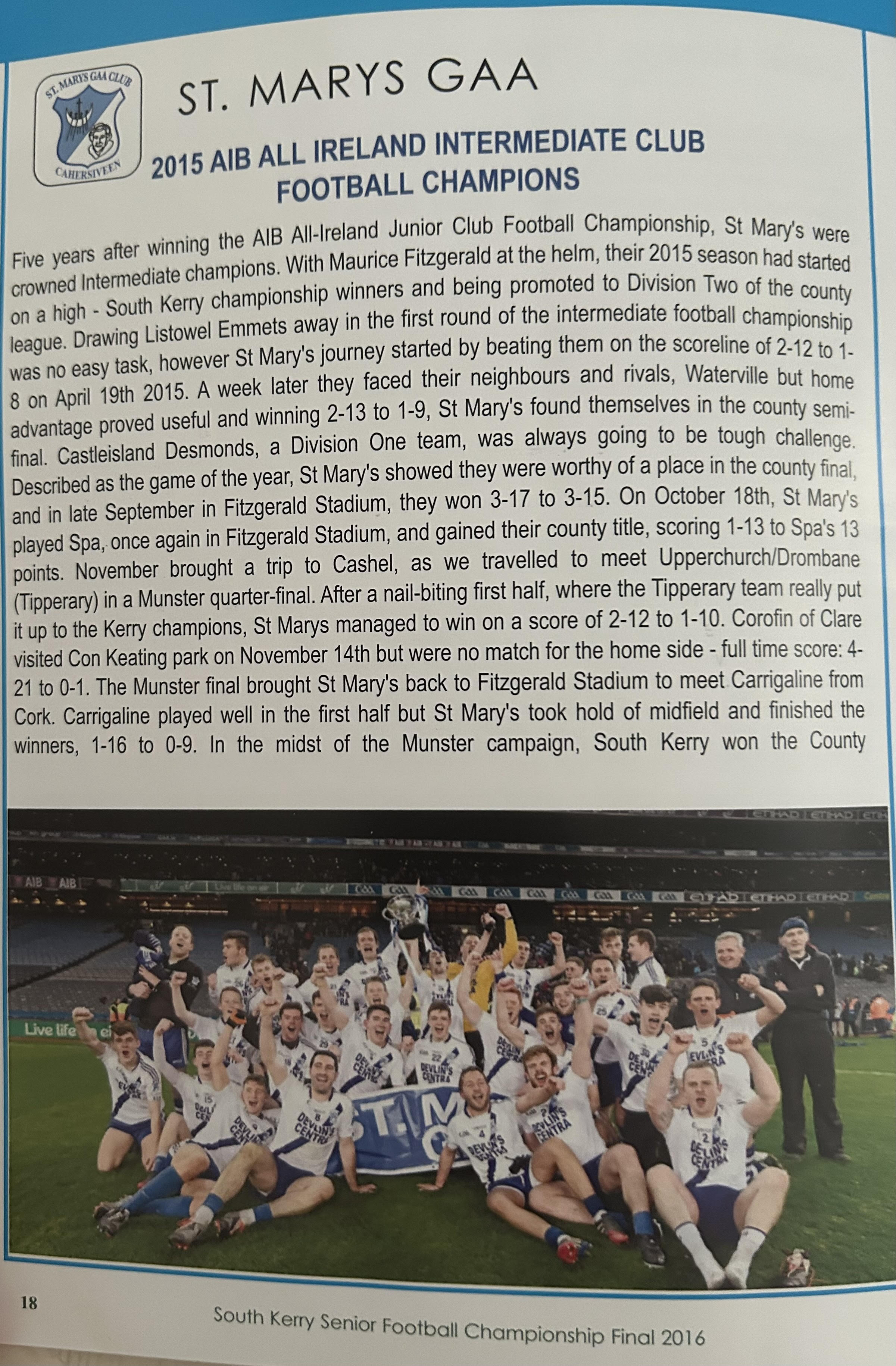 Credit Skellig Rangers for providing formidable opposition for long periods, and indeed it was only in the final quarter that the issue was put firmly beyond doubt. However, after St Marys had regained the lead, late in the opening half, having fallen behind early on to Diarmuid Keating’s goal for Skellig Rangers, the Portmagee combination were subsequently battling against the odds, and whenever they did threaten to overhaul the deficit on the scoreboard the defending champions were always able to respond with a number of unanswered scores.