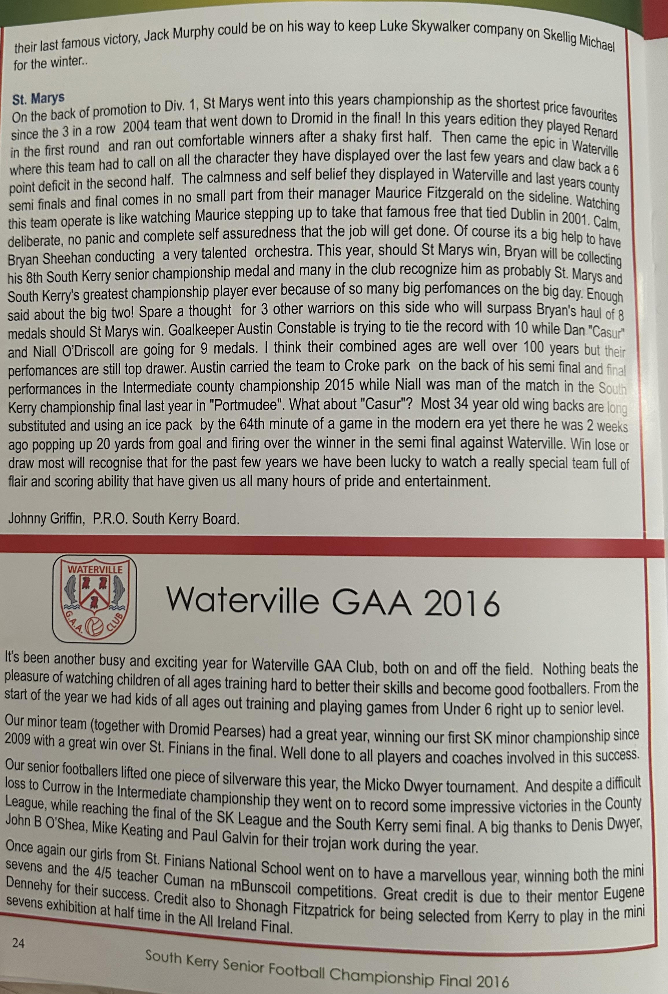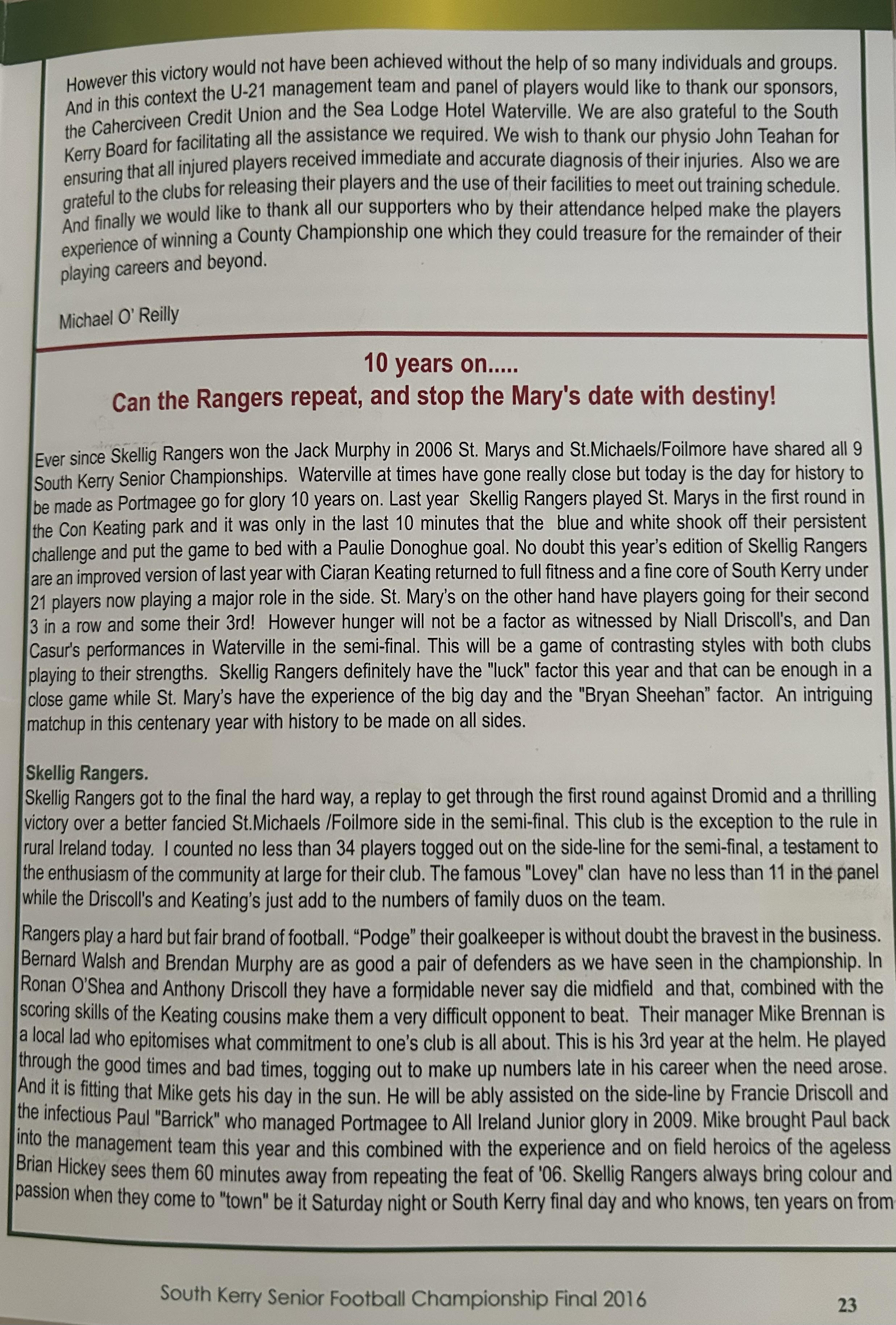 In addition they had won five South Kerry titles since Skellig Rangers last success in 2010, and were endeavouring to complete another three in a row. Add in the Bryan Sheehan factor, and, it was difficult to look beyond the town side.