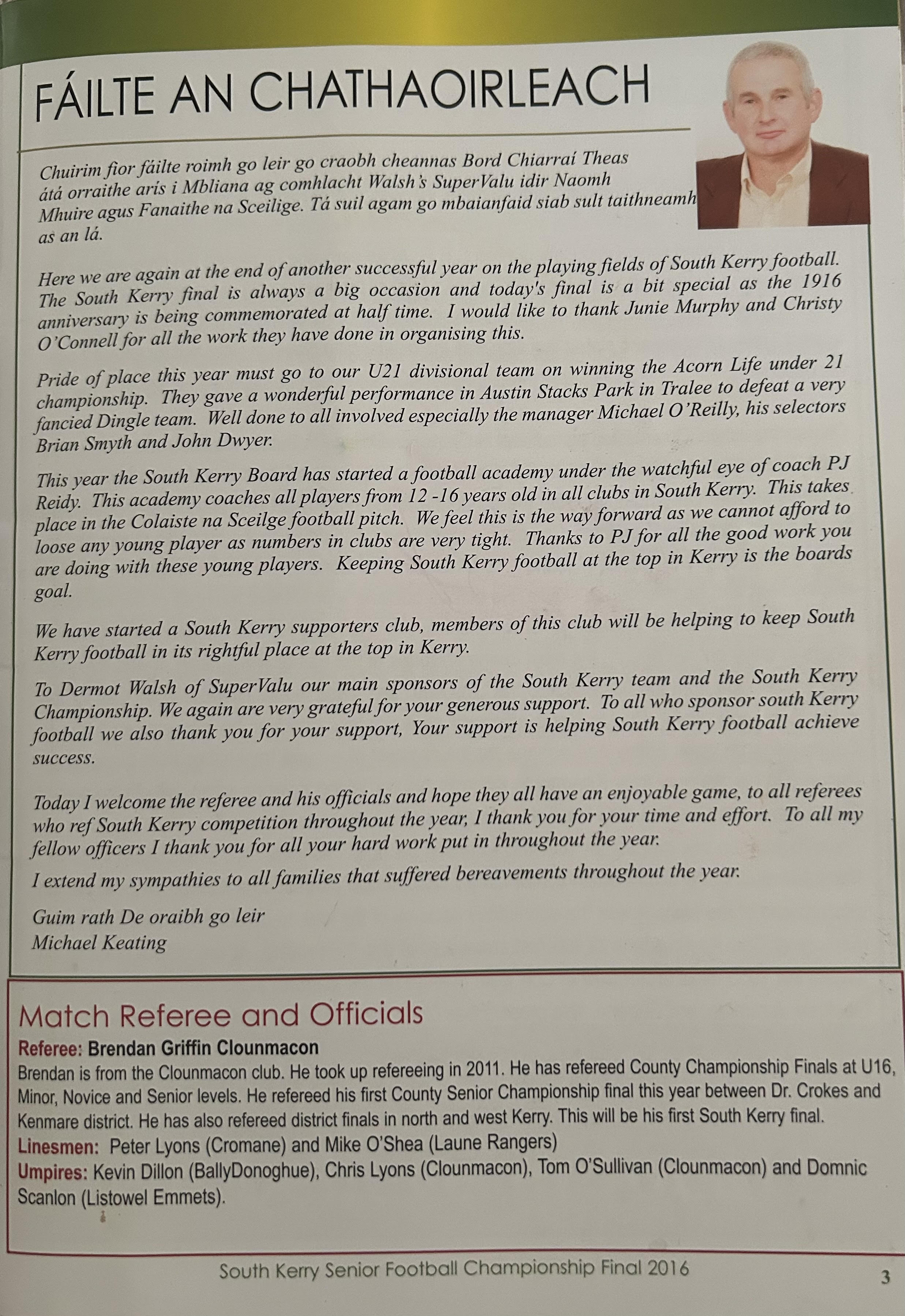 REFEREE: Brendan Griffin (Clounmacon)